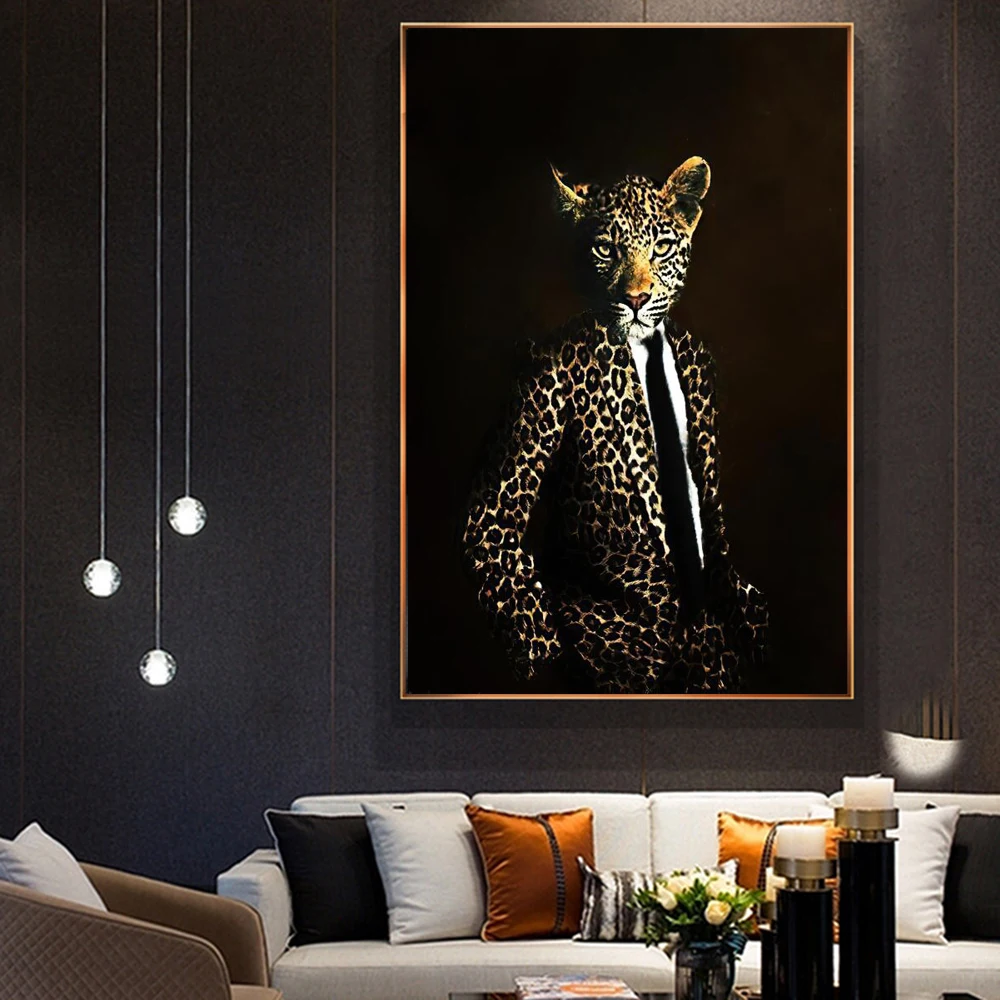 Современные художественные плакаты с животными и принтом, настенная Картина на холсте с леопардовым принтом, картина с леопардовым костюмом для гостиной, домашний декор