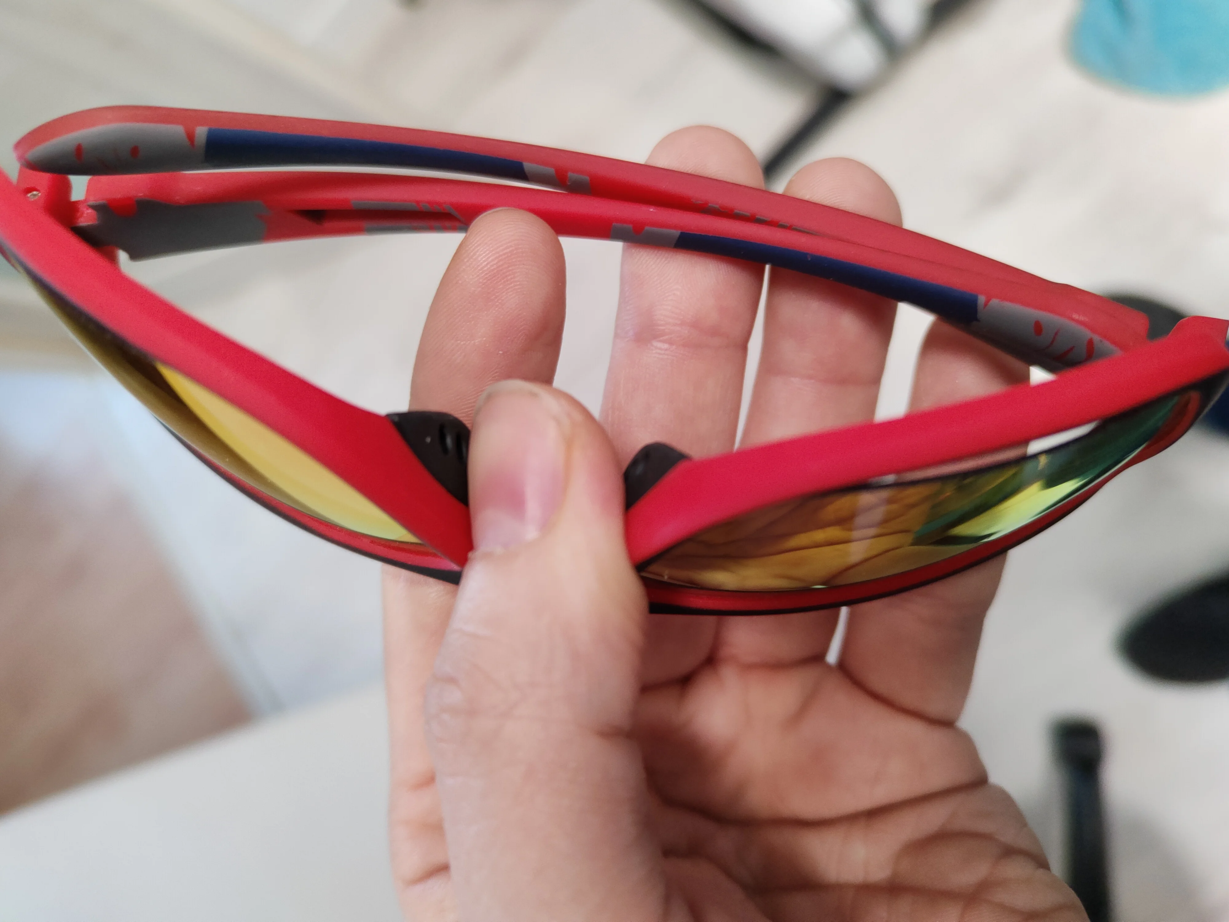 Отправили быстро, доставка быстрая. Очки неплохие. На ощупь прочные, ничего не болтается. Линзы поляризованные, частично гасят блики от фар и городского освещения. Обзор немного перекрывают, для городской езды не критично, а на тренировках ощущается нехватка бокового обзора и сверху.