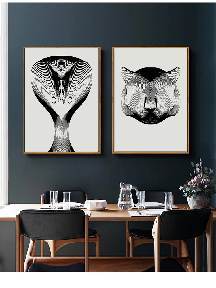 Современная модная черная линия, постер с животными, тигр, орангутан, Кобра, Сова, туртл, Скандинавская настенная Картина на холсте для фотографий