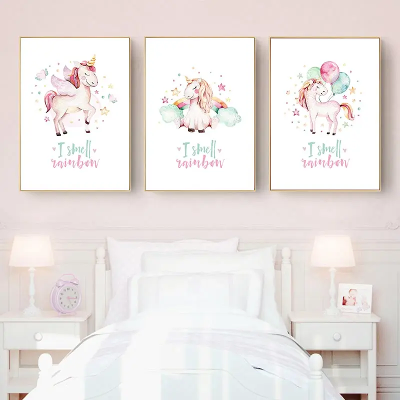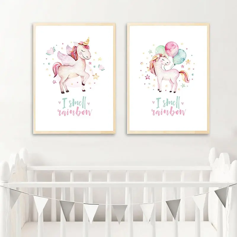 Детские постер с единорогом цветные флаги бантом холст картины вдохновляющие цитаты Wall Art принты Nordic девушки номер Декор