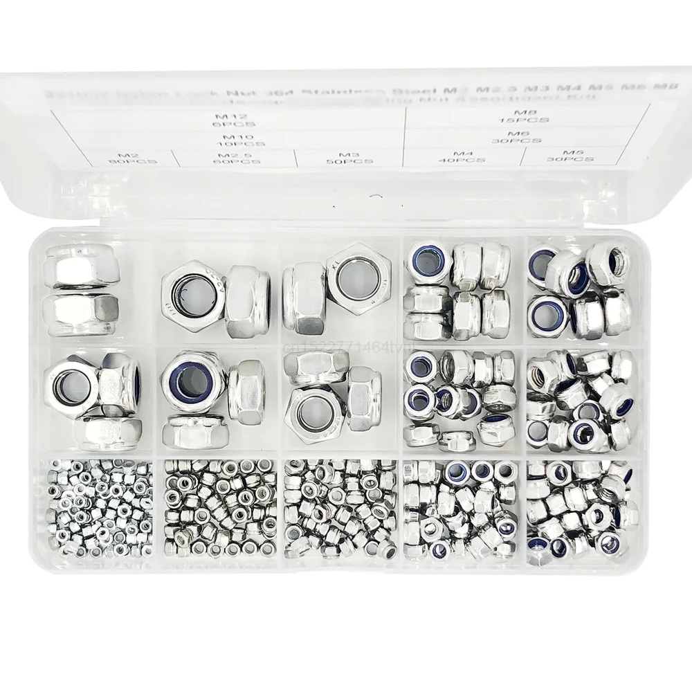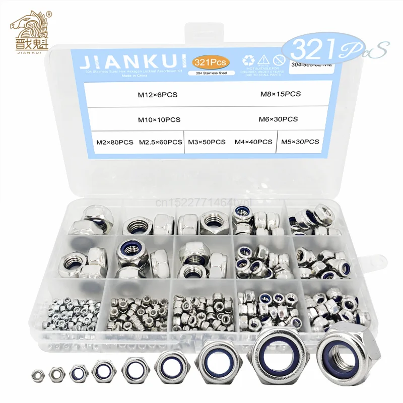 321 шт. нейлоновые стопорные гайки 304 из нержавеющей стали M2 M2 M2, 5 M3 M4 M5 M6 M8 M10 M12 Шестигранная самоблокирующаяся гайка в ассортименте