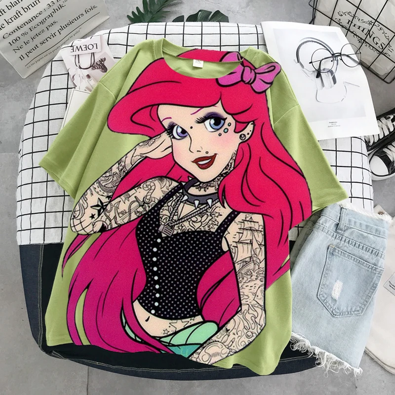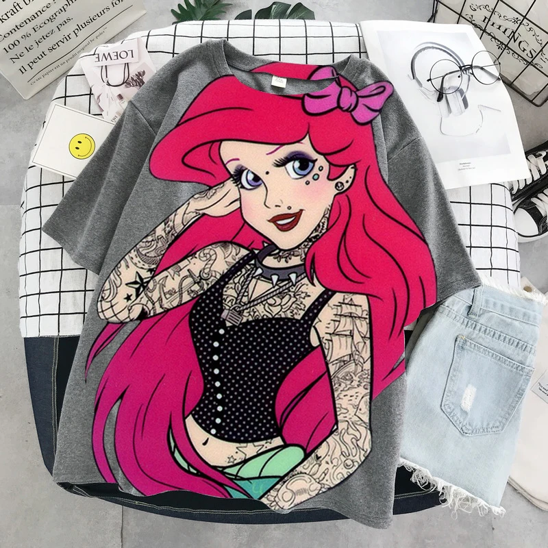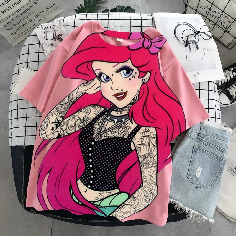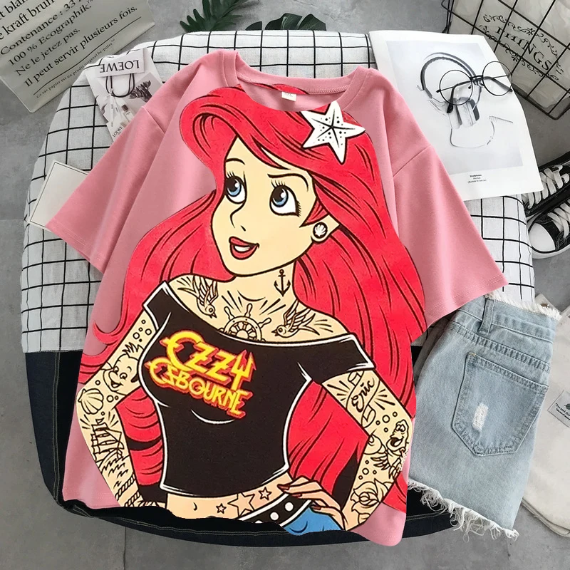 Футболка женская с рисунком Disney Y2k, Одежда большого размера с а...