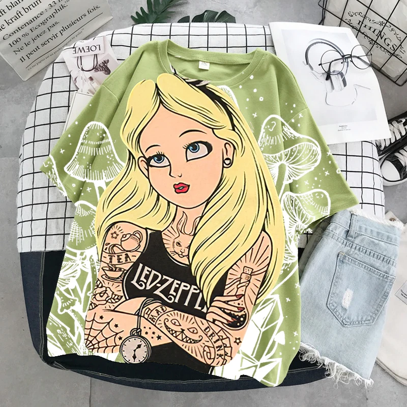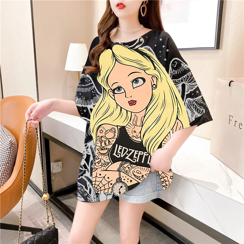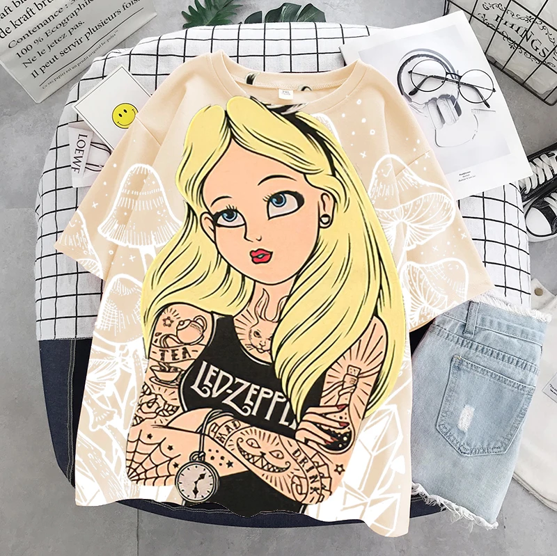 Футболка женская в стиле Алиса в стране чудес, повседневный топ с к...