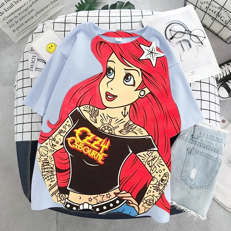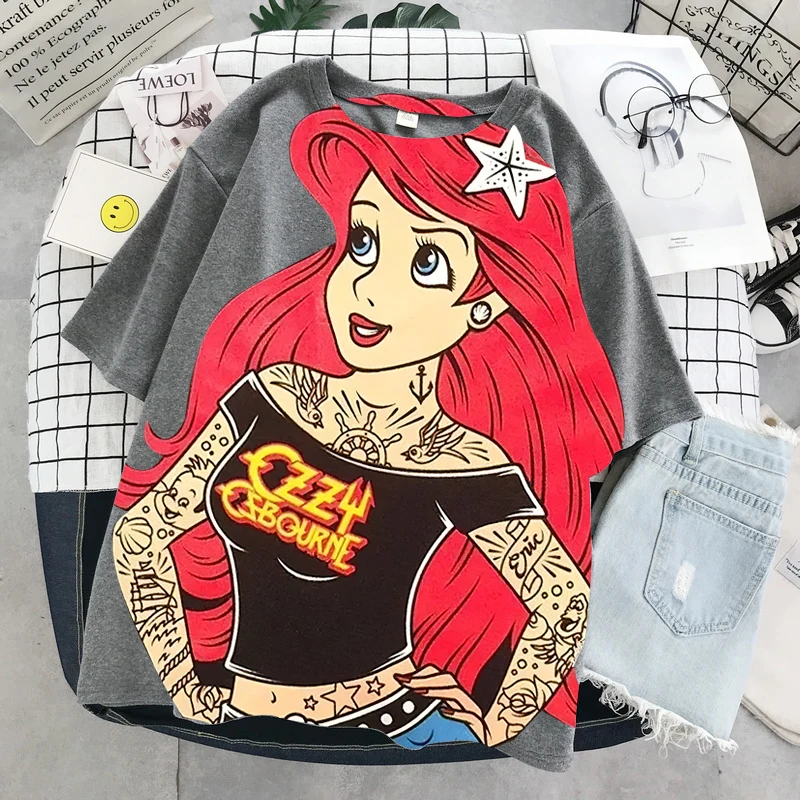 Футболка женская большого размера с коротким рукавом, Ариэль, принц...