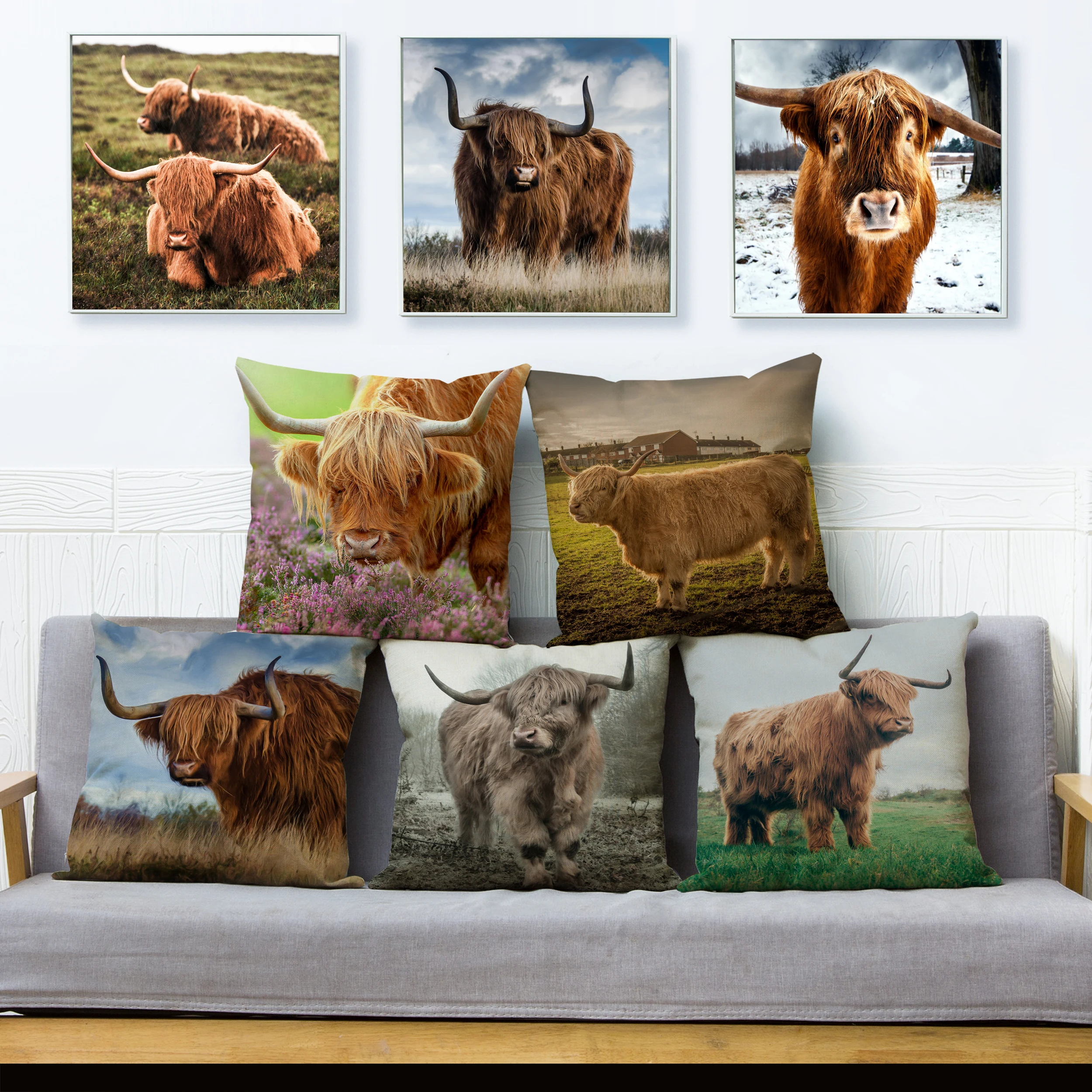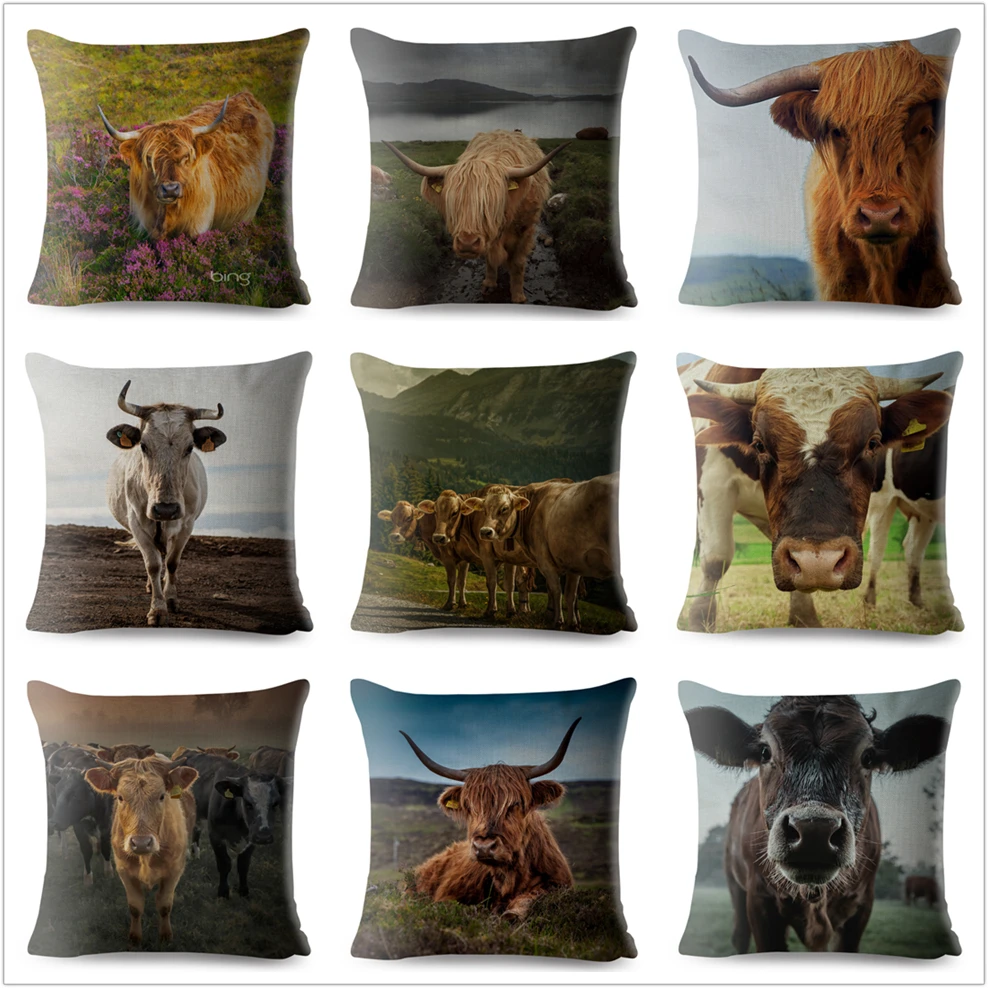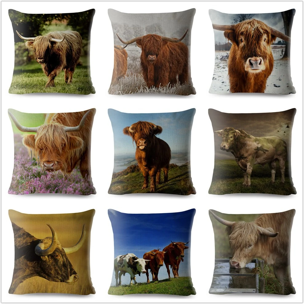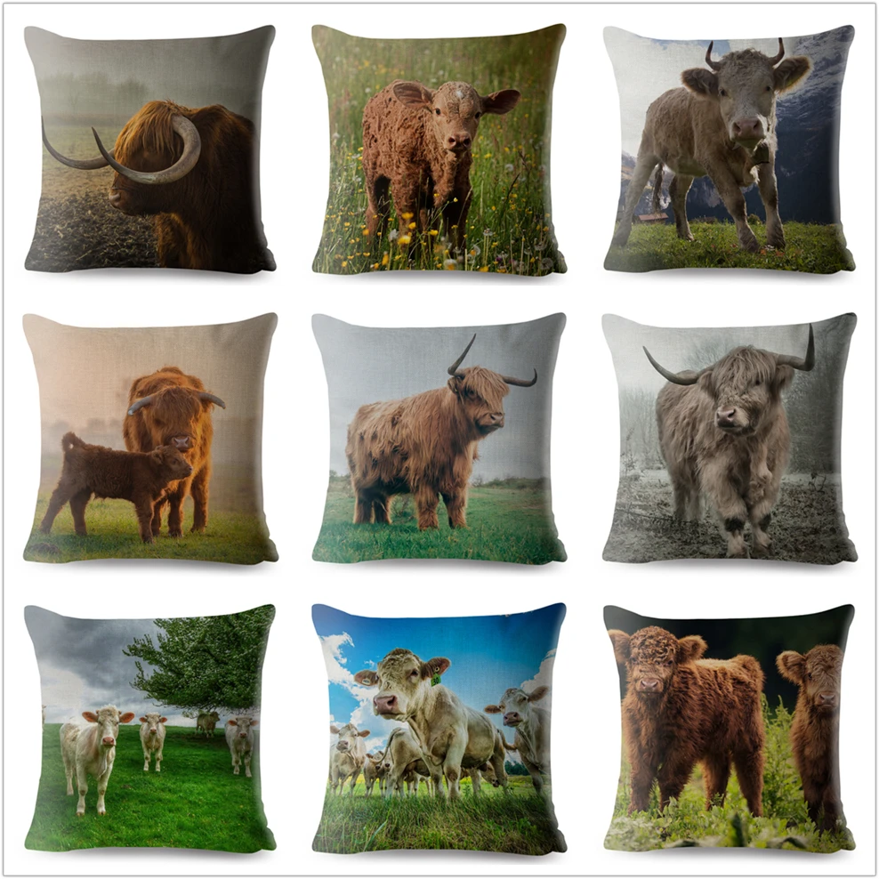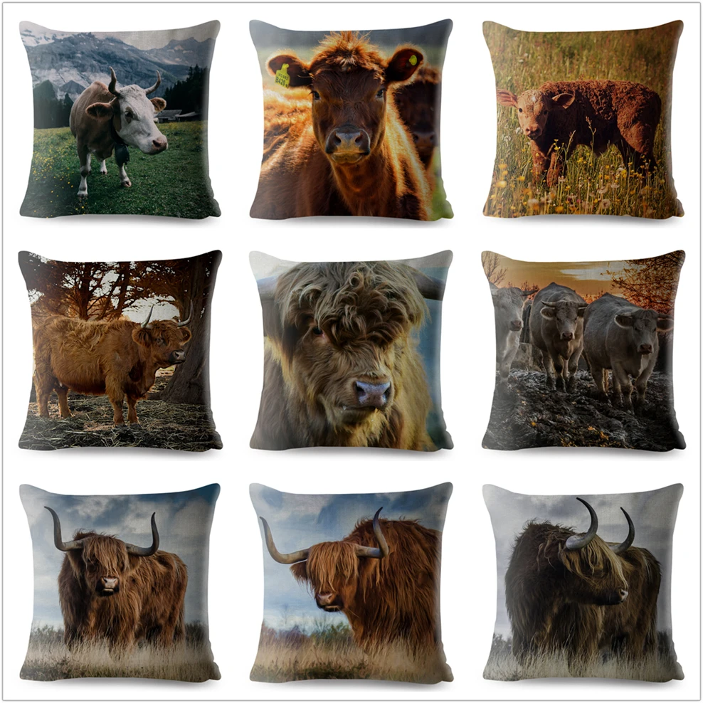 Наволочка для дивана, домашний декор, с принтом шотландского горца, крупного рогатого скота, коровы, Детская Подарочная льняная наволочка 45*45