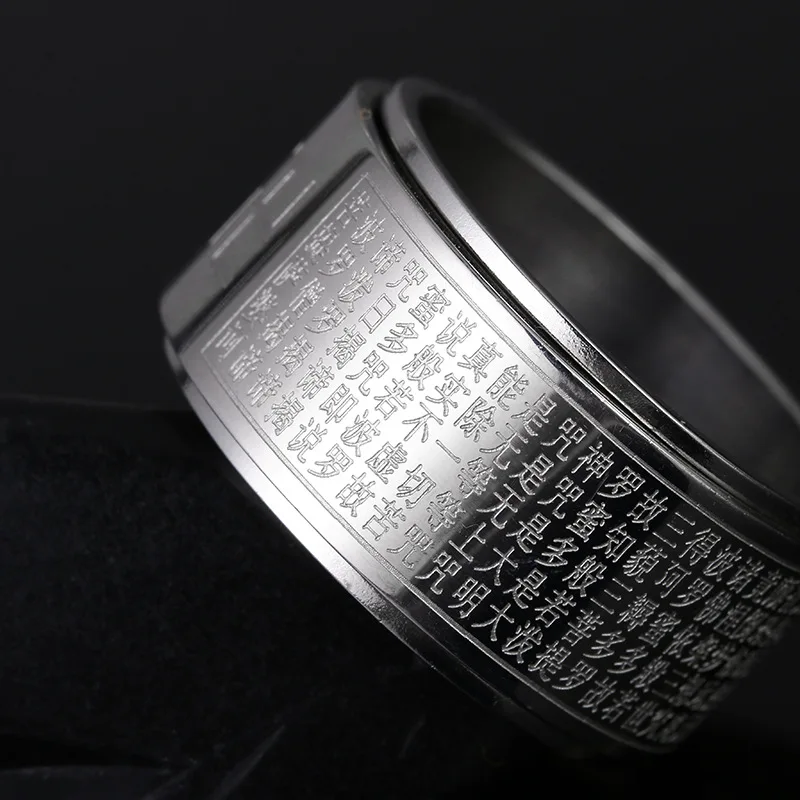 Новый буддийские Праджня Сутра сердце Классическая титановая сталь с вращающимся кольцом мужского и женского пола транспорта амулет изысканный ReligiousJewelry