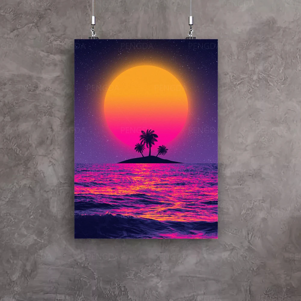 Холст для украшения дома Vaporwave, настенный неоновый плакат, моду...