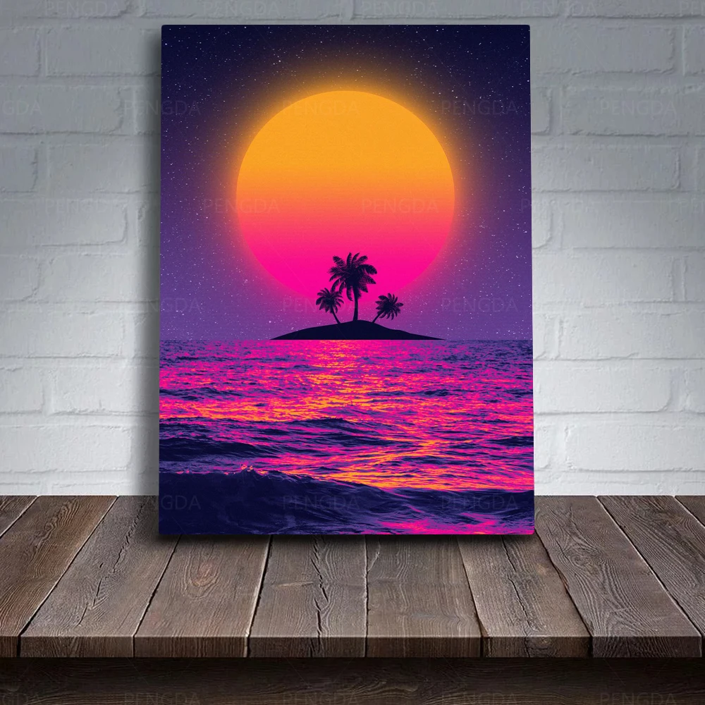 Модульные картины Сумерки на холсте картина Synthwave тропический п...
