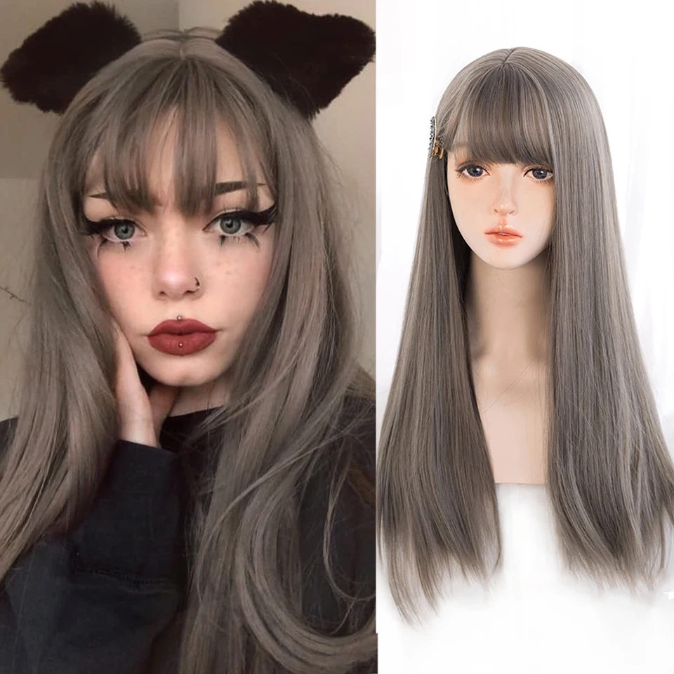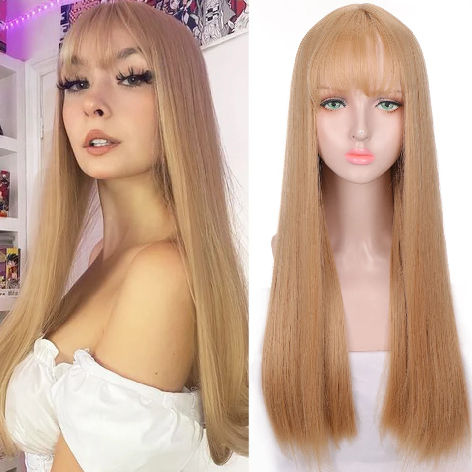 Женская Синтетическая челка с длинными прямыми волосами для косплея