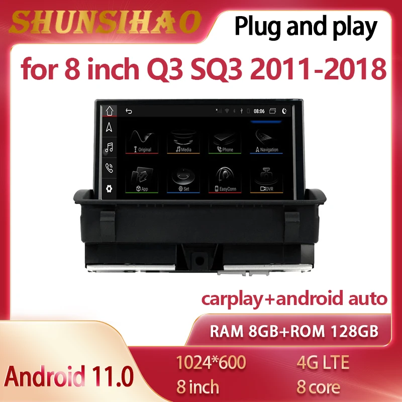 Оригинальный стиль автомобиля, Реверсивный экран Этот продукт подходит для:Audi Q3 2011-2018Хит продаж:1. Поддержка операционной системы: Система Android 11.2. Встроенный 128 ГБ ROM. (64 Гб ROM)3. Поддержка 8 Гб оперативной памяти.4. Поддержка процессора: 8 ядер.5. Мой экран может перемещаться как оригинальный автомобильный экран.4. Поддержка 4G слота для sim-карты.6. Наш кабель подключен и работает, нет необходимости резать оригинальный автомобильный кабель.7. После установки нашего продукта, функция автомобиля orignla все еще может храниться.Характеристика:1. Поддержка 8 дюймовый сенсорный экран2. Поддержка Bluetooth музыки и Bluetooth телефона.3. Встроенная GPS навигационная система.4. Поддержка функции двойной зоны.5. Поддержка воспроизведения видео 1080P.6. Поддерживает высококачественный музыкальный выход.7. Встроенный WIFI приемник.8. Поддержка управления рулевым колесом.9. Поддержка usb-входа.10. Поддержка отображения даты и времени.11. Поддержка play store.12. Поддержка управления папками.13. Поддержка графического интерфейса пользователя.14. Поддержка установки приложений.15. Встроенный микрофон или поддержка внешнего микрофона.16. Поддержка функции календаря.17. Поддержка оригинального автомобильного усилителя.18. Поддержка функции обратной камеры (опционально).19. Поддержка DAB + digital radio.(опционально).20. Поддержка системы контроля давления в шинах (TPMS).(опционально).