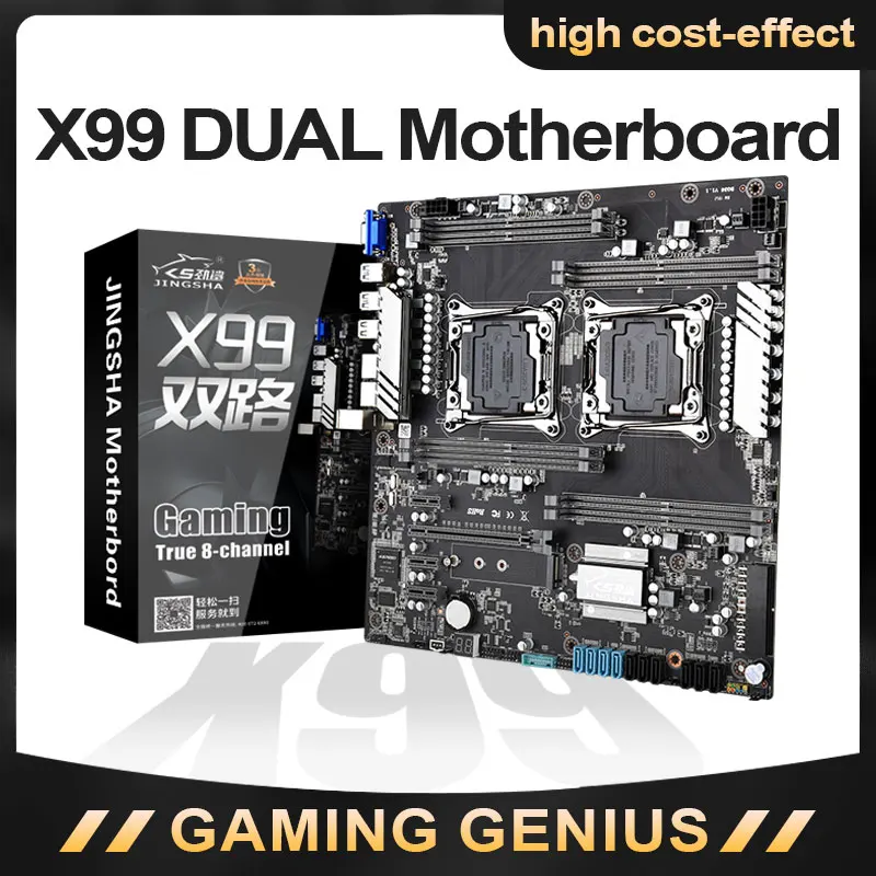 Материнская плата JINGSHA X99, два процессора LGA 2011-V3 Socket Dual Gigabit Ethernet VGA USB3.0 10 * SATA3.0 NVMe M.2 8 * DDR4 до 256 ГБ