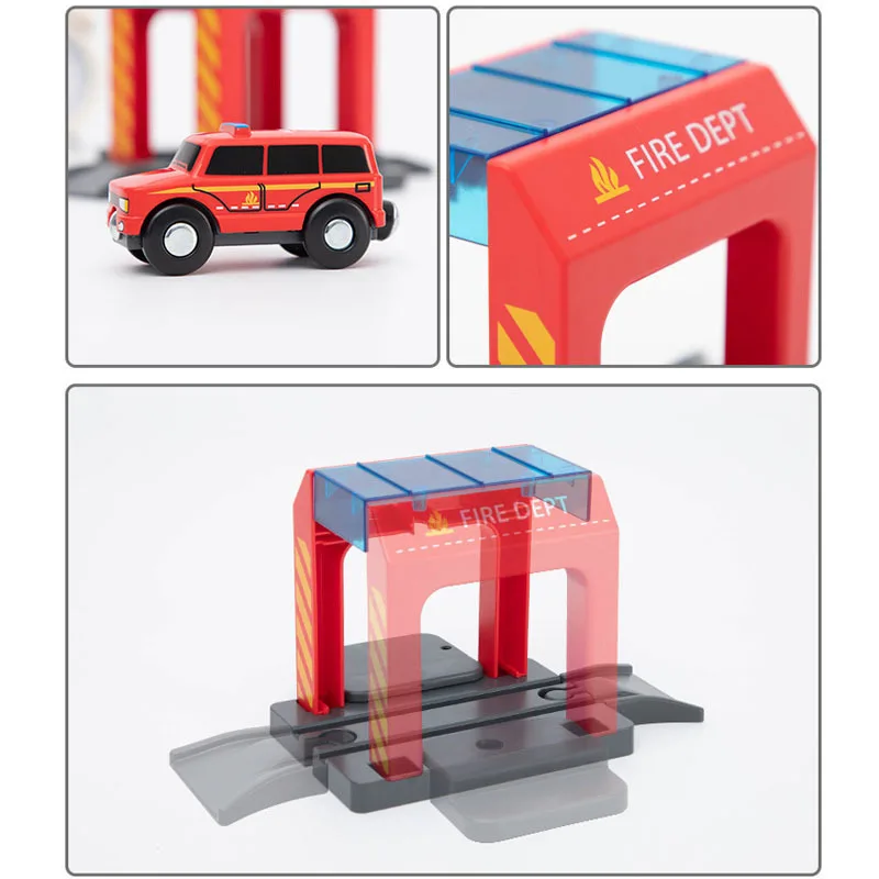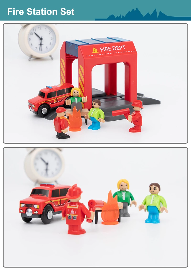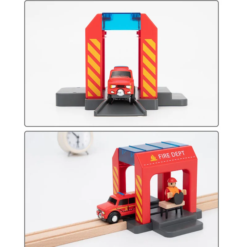 Аксессуары для железнодорожного пути из бука, пластиковый полицейский участок, деревянные железнодорожные треки, детали, совместимые со всеми брендами треков