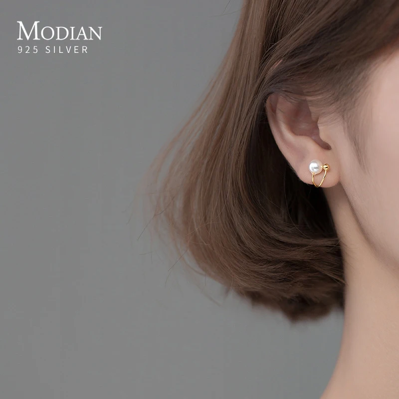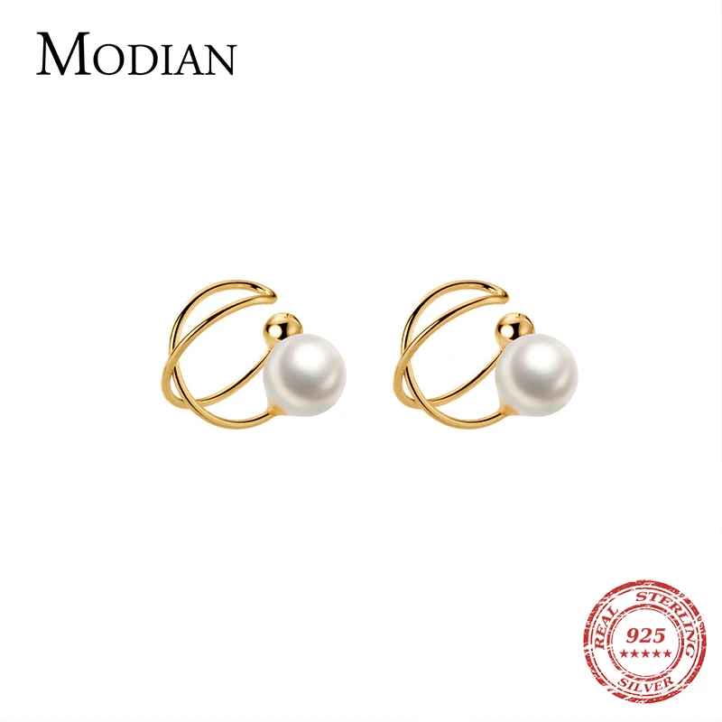 Женские серьги-клипсы с жемчугом Modian, из стерлингового серебра 100% пробы золотого цвета с жемчугом, Изящные Ювелирные украшения
