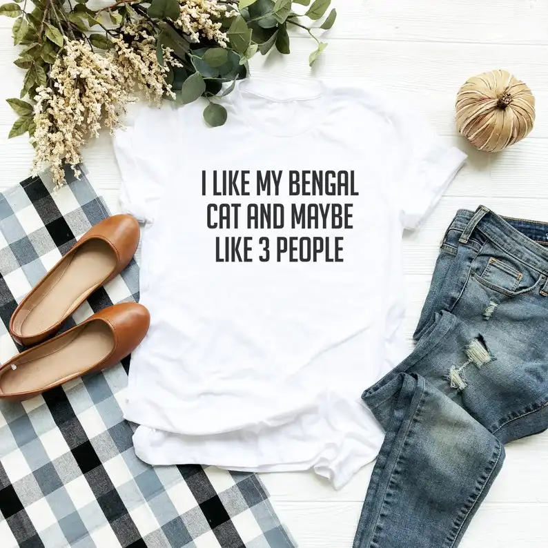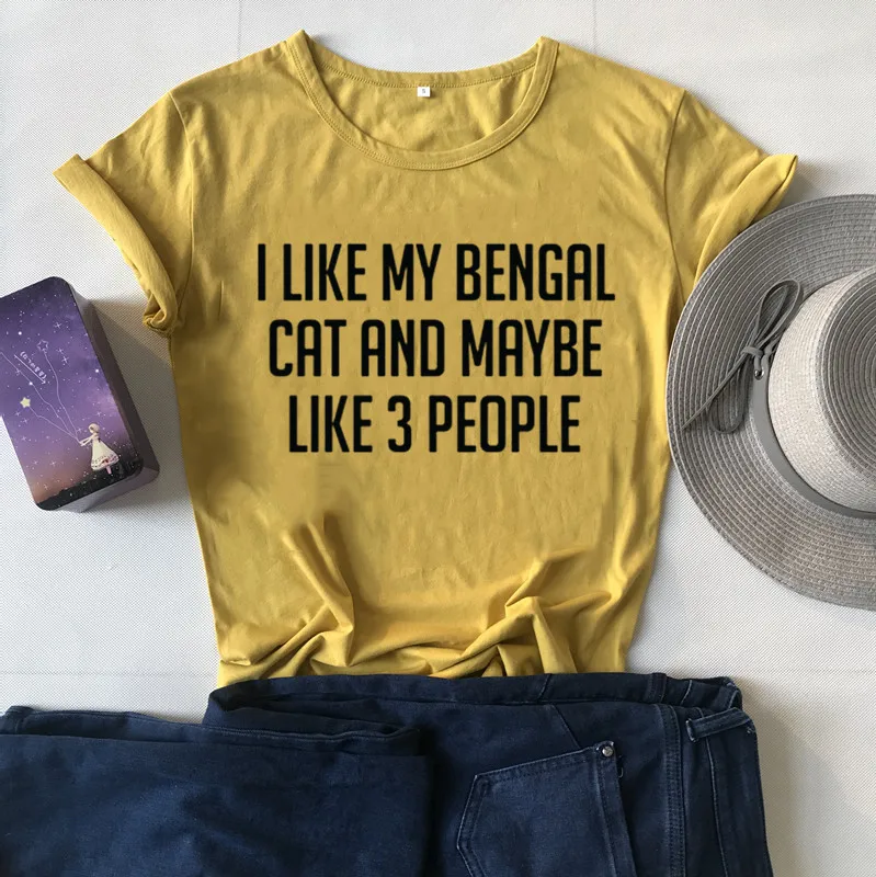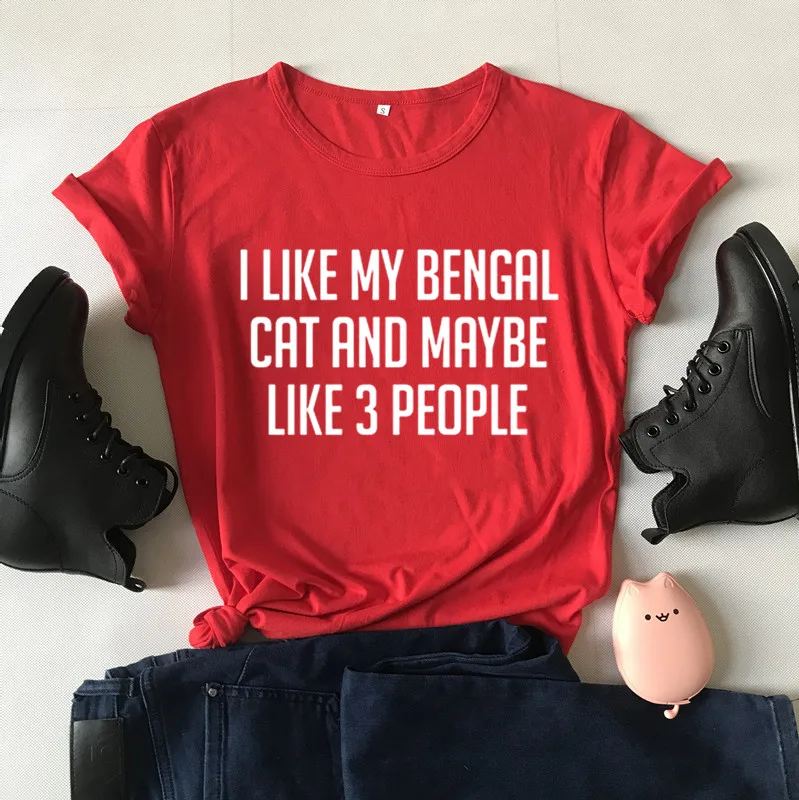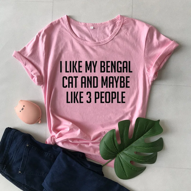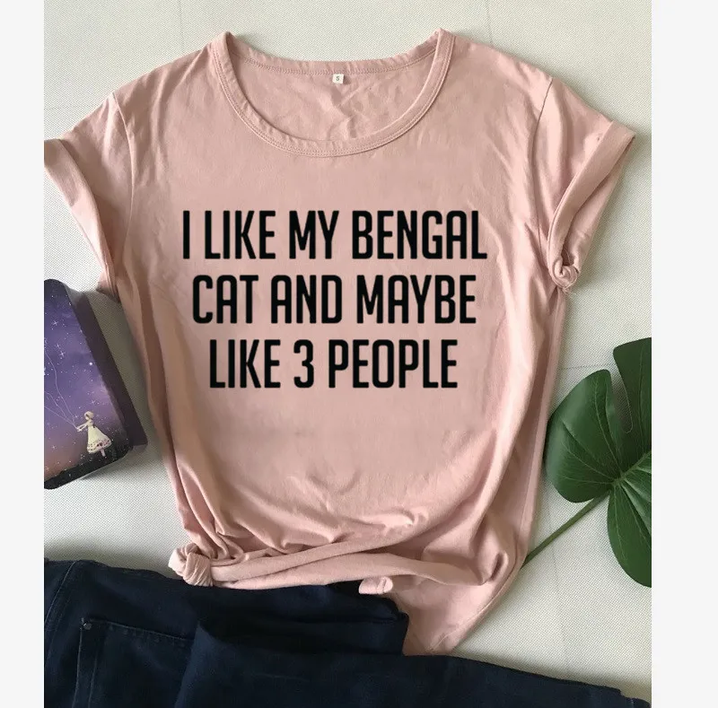 Футболка женская с принтом Моя Бенгальская кошка и, возможно, 3 человека, 100% хлопок