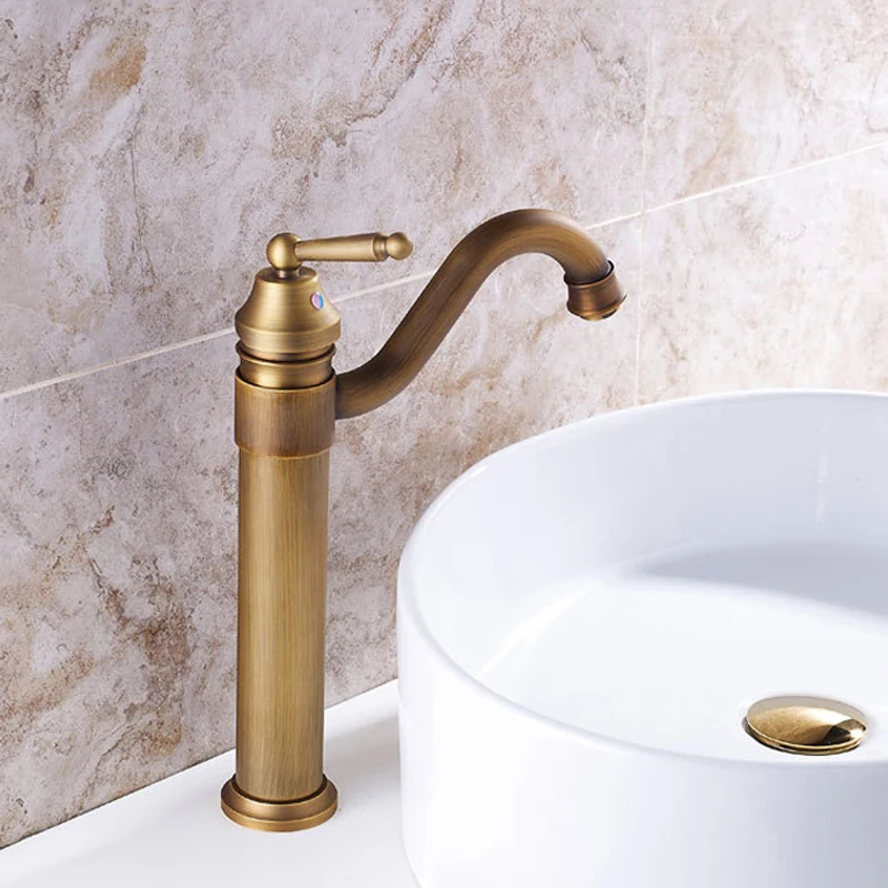 Антикварный медный смеситель для ванной комнаты, Европейский классический стиль, смеситель для холодной и горячей воды, кран с одной ручкой, краны для раковины на бортике