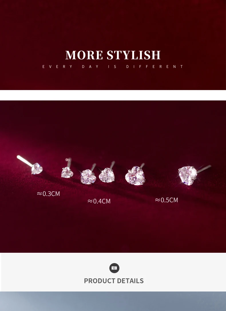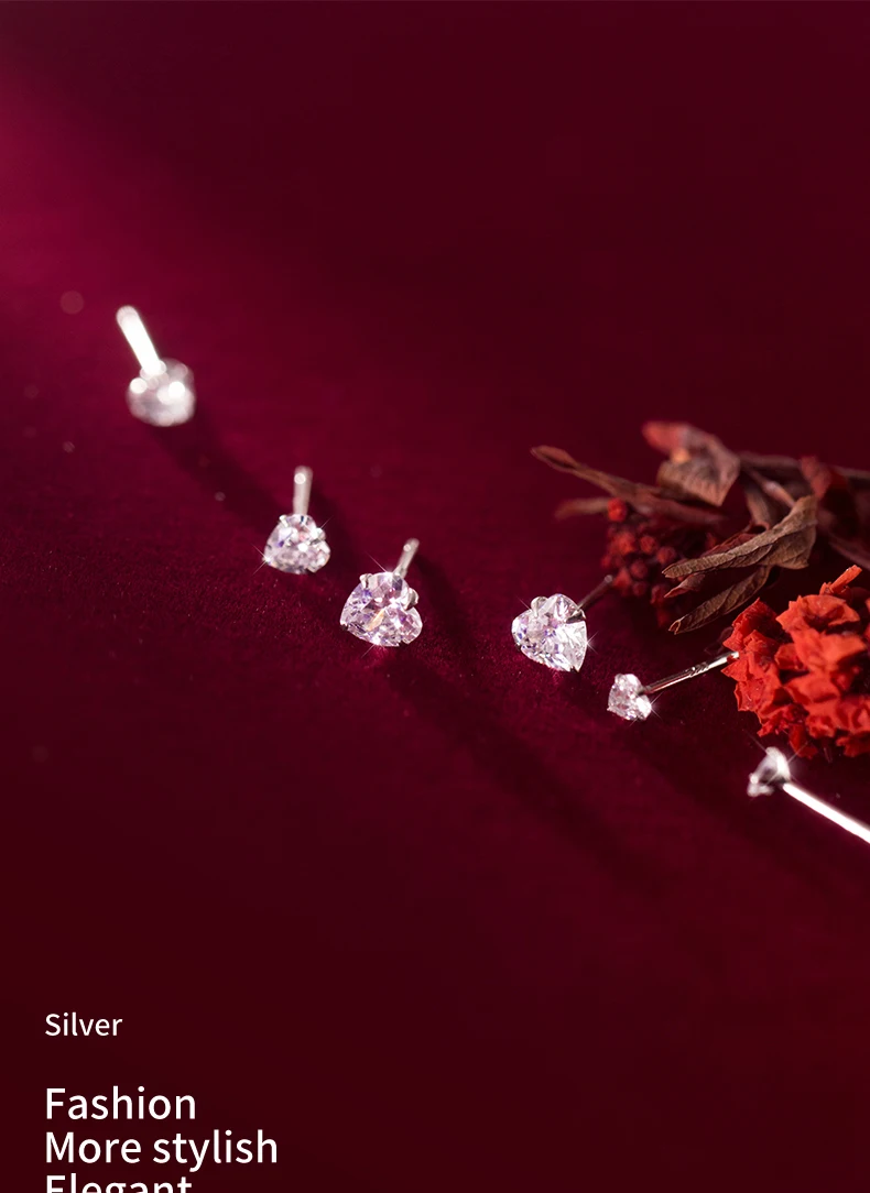 Серьги-гвоздики женские из серебра серьги сердце пробы, 100% пробы