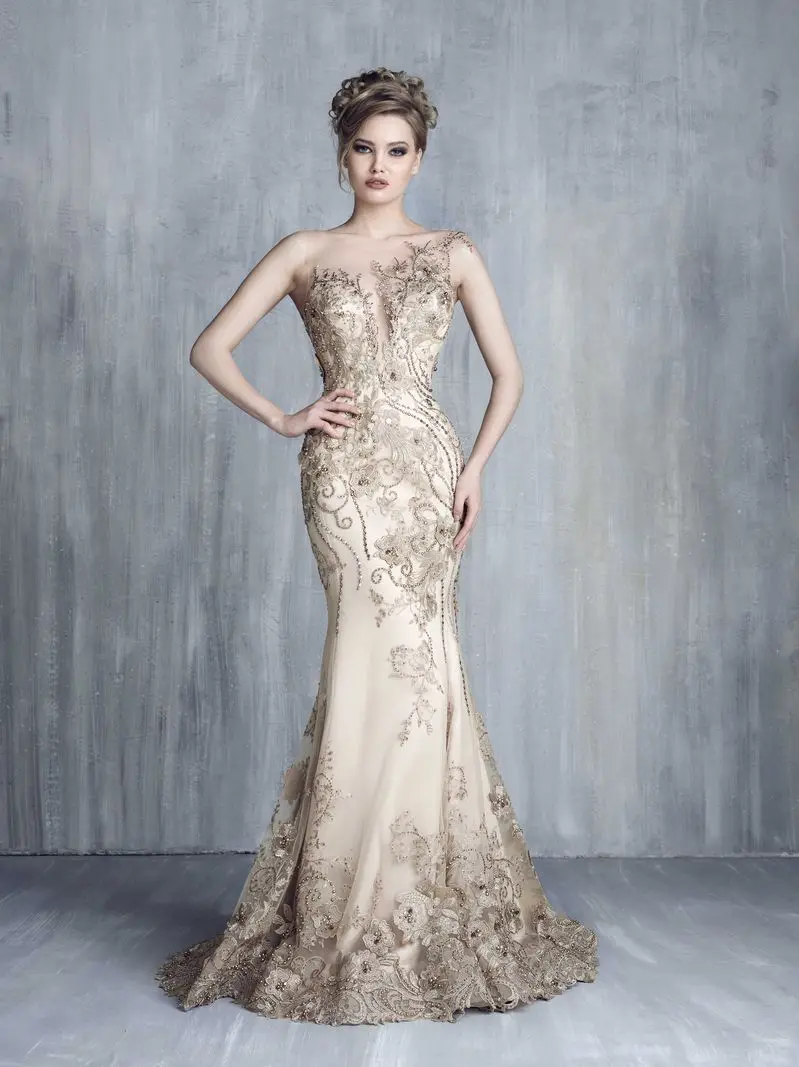 Вечернее платье Tony Chaaya, с отстегивающимся шлейфом, с бусинами цвета шампанского, Кружевная аппликация, для выпускного вечера, 2021