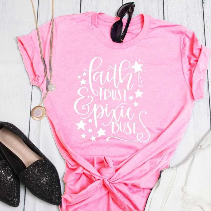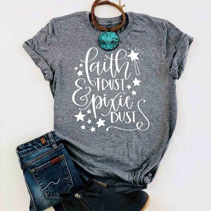 Вера доверие Пикси пыли для женщин повседневные хлопковые топы, футболки с коротким рукавом модные христианской женской одежды Harujuku Одежда для девочек с круглой горловиной, футболки для девочек