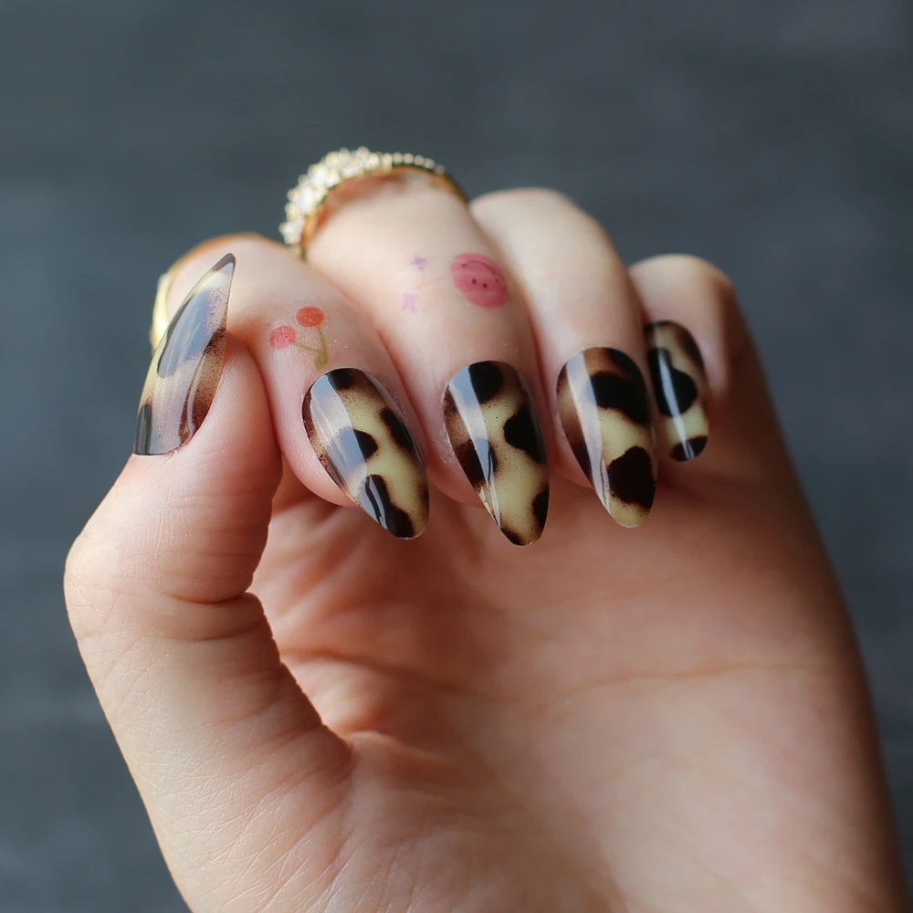 Летние накладные ногти с леопардовым принтом