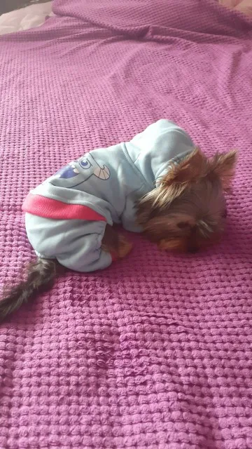 Хороший костюмчик. Аккуратный, нитки не торчат, кнопочки все работают. На лохматую чихуашку взяла XL, (собака весит 6,5 кг.)чуть великоват, а так норм. Но по крайней мере ни где не тянет и не жмет. Ткань похоже на флис. До Москвы доставка ок. двух недель. за это продавцу респект. Рекомендую и товар и продавца.!!!