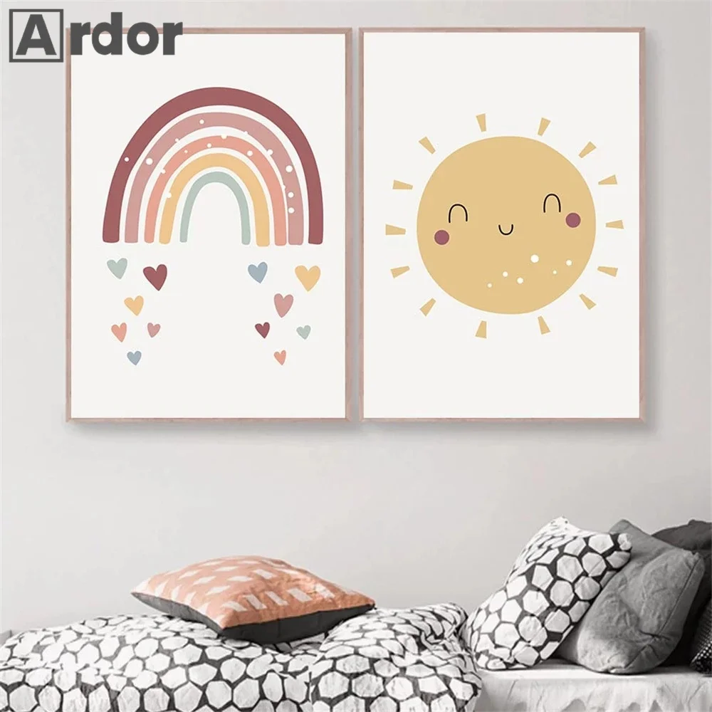 Настенный плакат в скандинавском стиле с изображением солнца, радуги, облака, сердца, звезд, холст, картина для детской комнаты, художественные принты, современные картины, декор для детской комнаты