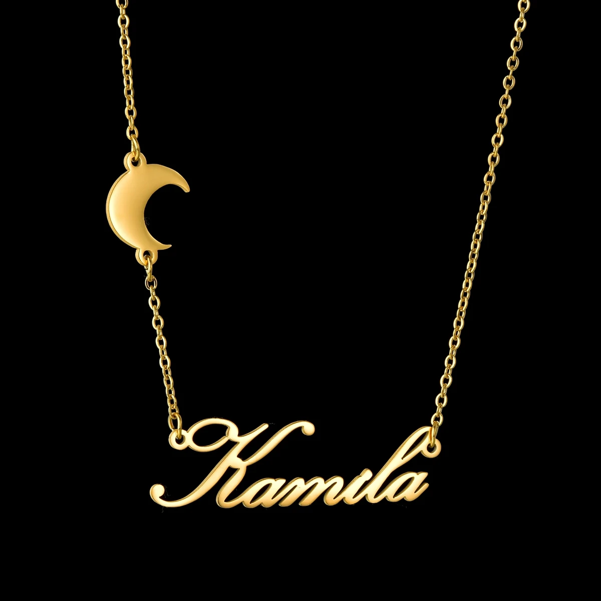 Симпатичные Луна персонализированные кулон-табличка с именем ожерелья ювелирные изделия из нержавеющей стали, колье на заказ толстовка с принтом "буквы", для женщины на рождественскую тематику, ювелирное изделие, подарок