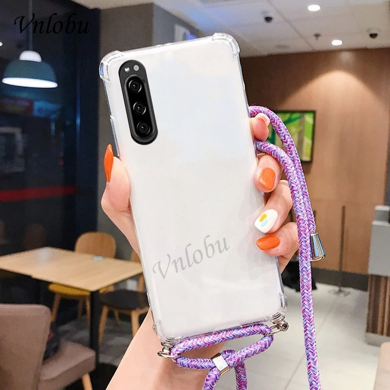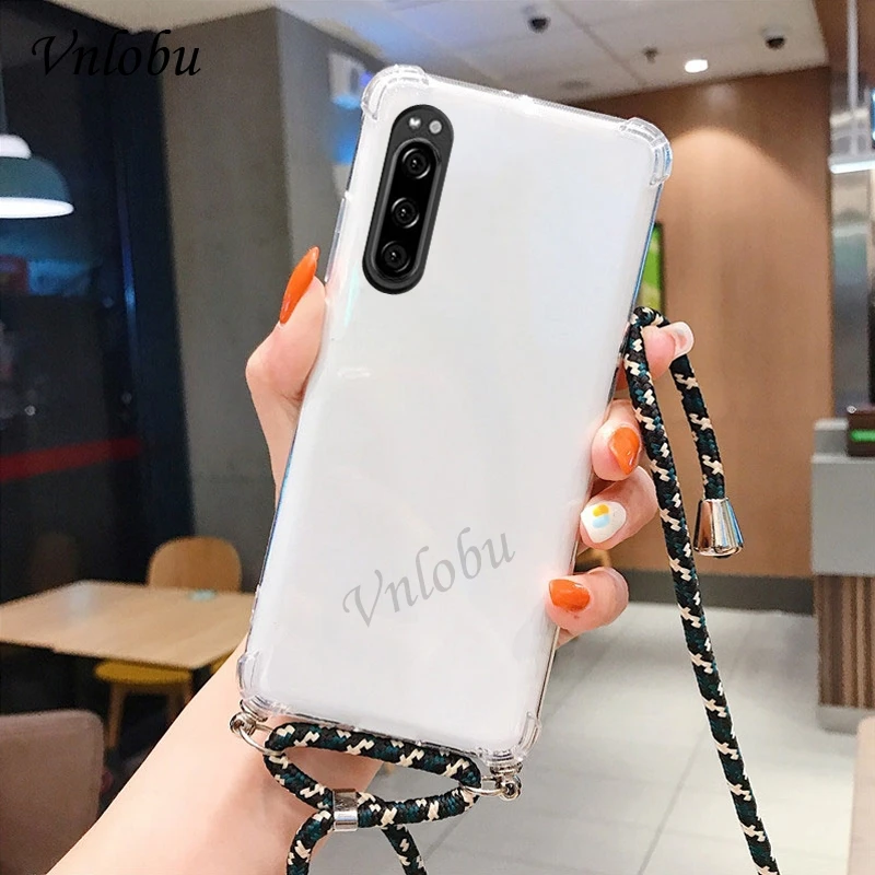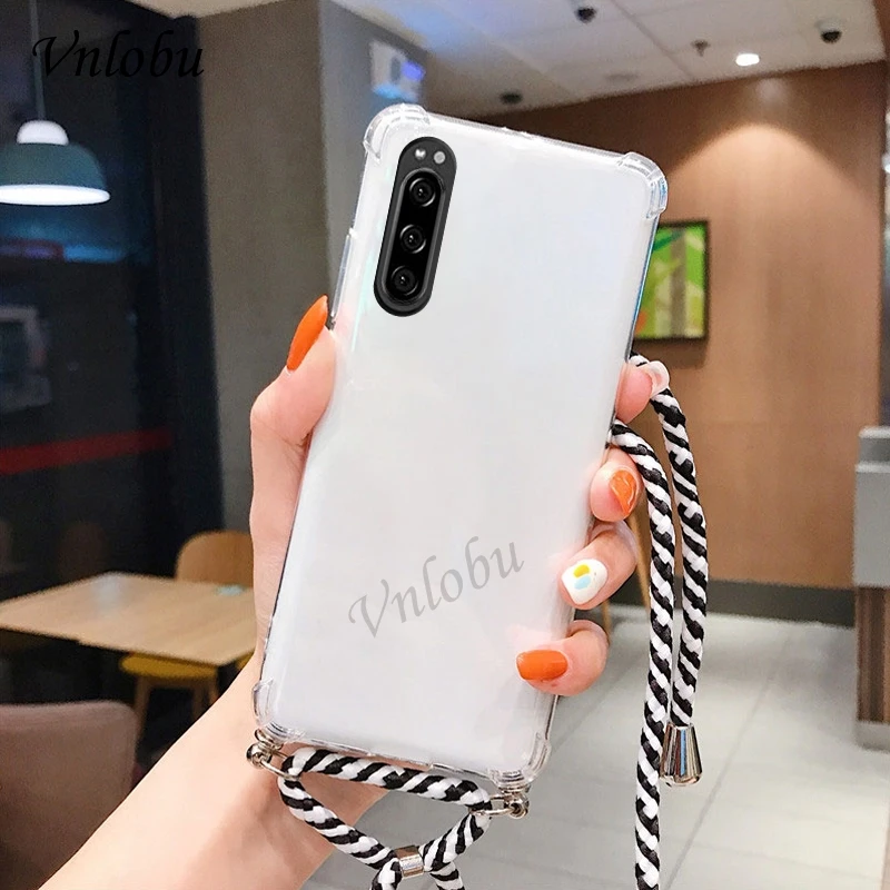 Прозрачный ударопрочный мягкий чехол для телефона Sony Xperia 1 10 III L5 L4, чехол через плечо, шнур, ремешок, чехол для Xperia 8 10 ii