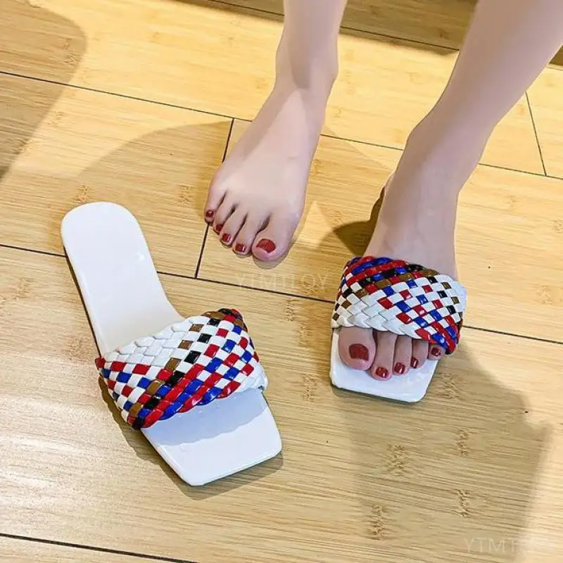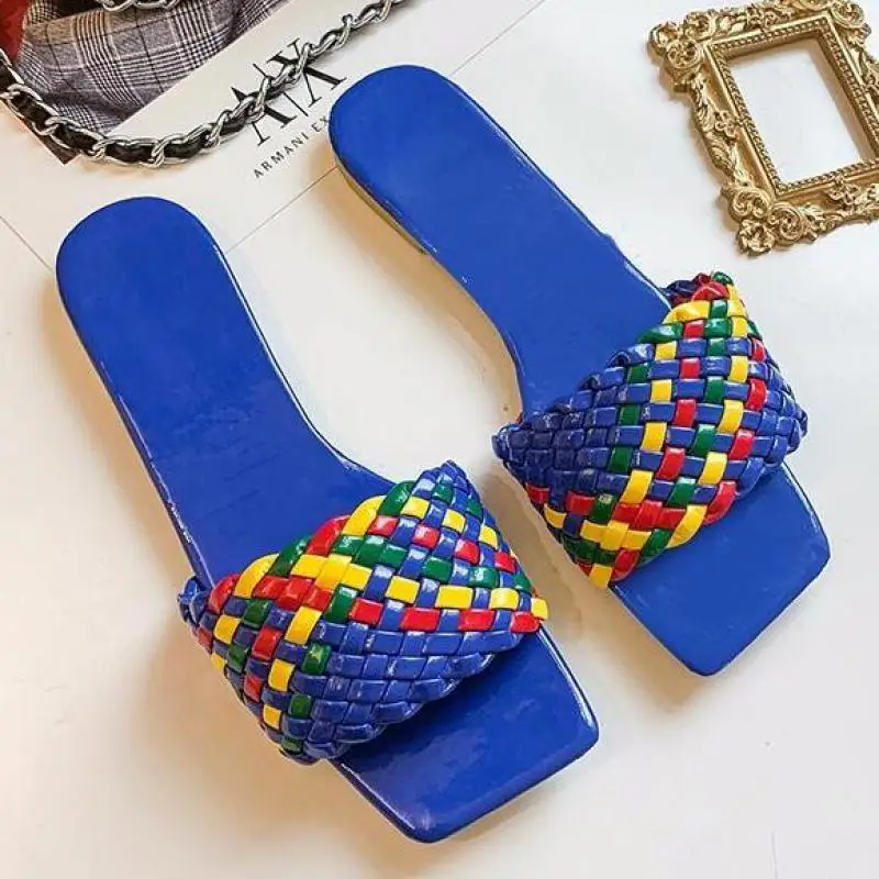 Женские пляжные шлепанцы, разноцветная Очаровательная обувь с открытым носком, на плоской подошве, пляжные сандалии для отпуска, повседневные сланцы