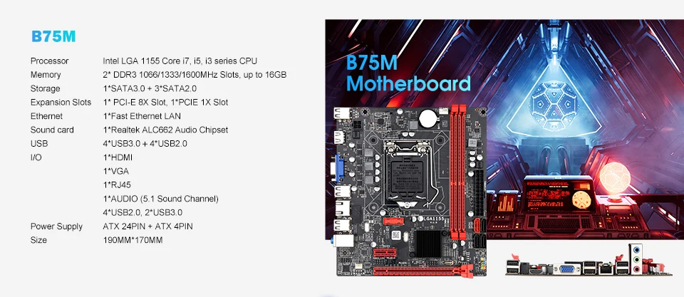 Материнская плата JINGSHA B75M, материнская плата для настольного ПК B75 LGA1155 для процессора i3-2100 i3-2120 i3-3240 i5-2400 i5-3450 i7-2600, поддержка оперативной памяти DDR3, для i5-3470