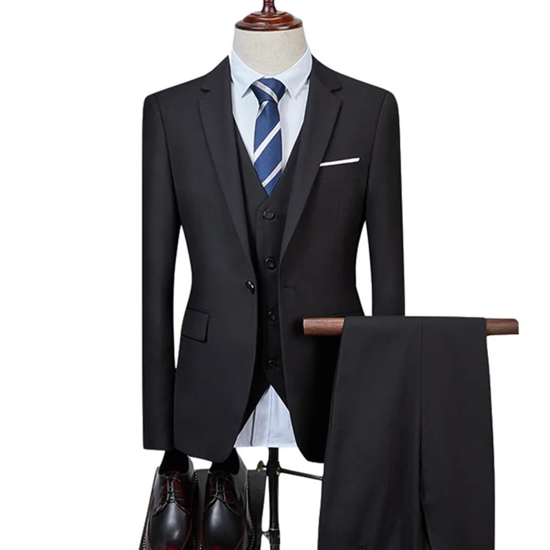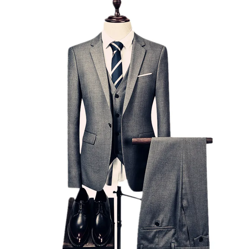 Новинка 2022, модный мужской деловой повседневный костюм из трех предметов, мужской свадебный однотонный блейзер для жениха, пиджак, брюки, жилет