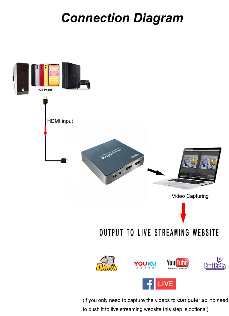 Карта видеозахвата 4K HDMI на Type C USB 3,0, коробка для прямой трансляции видео, запись игр 1080P 60fps 120fps, петля HDR до 240fps, без задержки