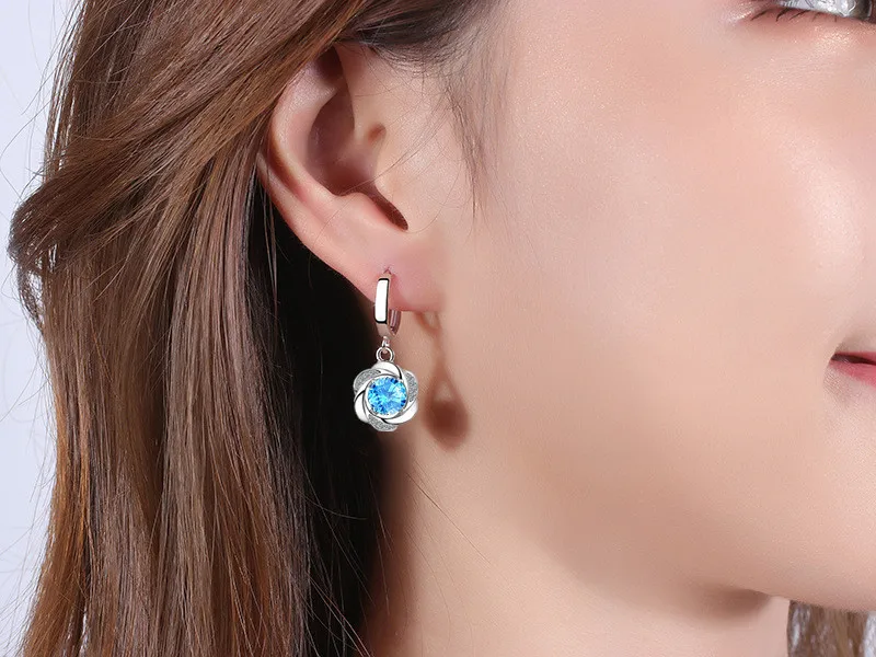 Женские серьги из серебра 925 пробы, с голубым кристаллом, цирконие...