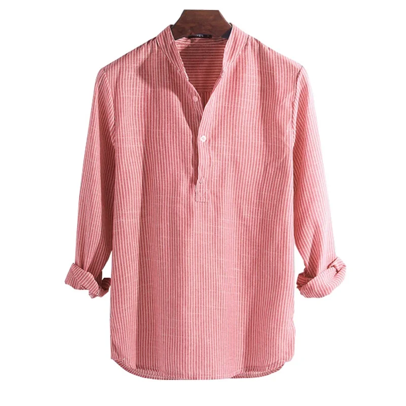 Рубашка мужская с длинным рукавом и воротником-стойкой, в полоску