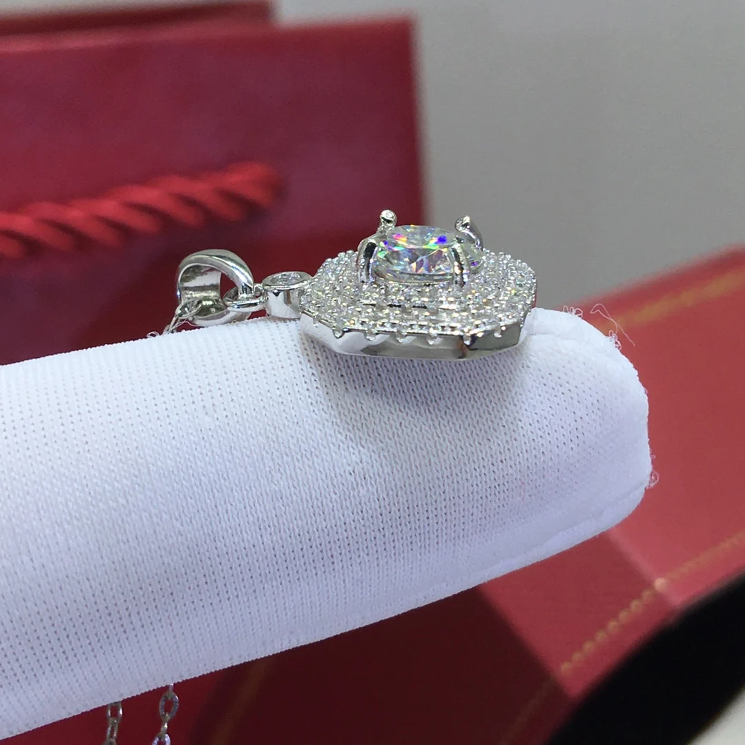 Серебряное ожерелье с превосходной огранкой, 1 карат, с бриллиантами, прошедшая испытание, D-образный цвет, высокая четкость, белый муассанат, серебряное ожерелье, свадебная цепочка 925