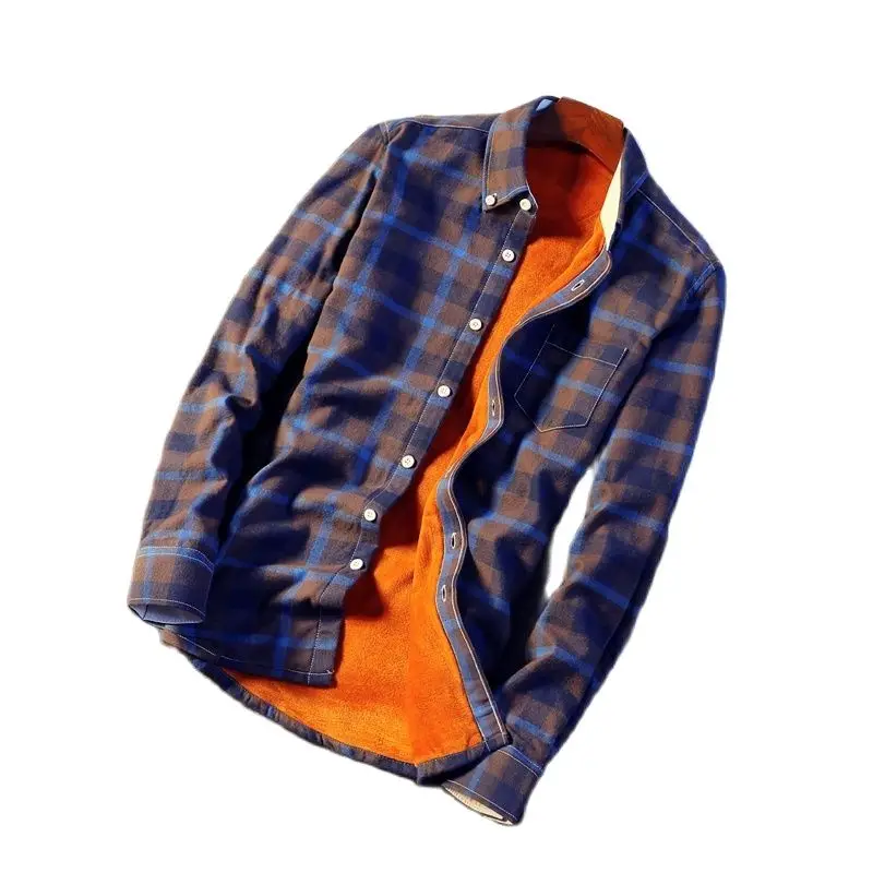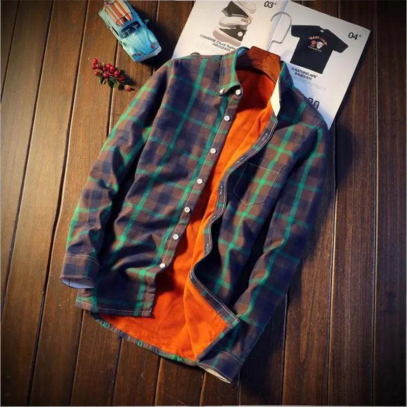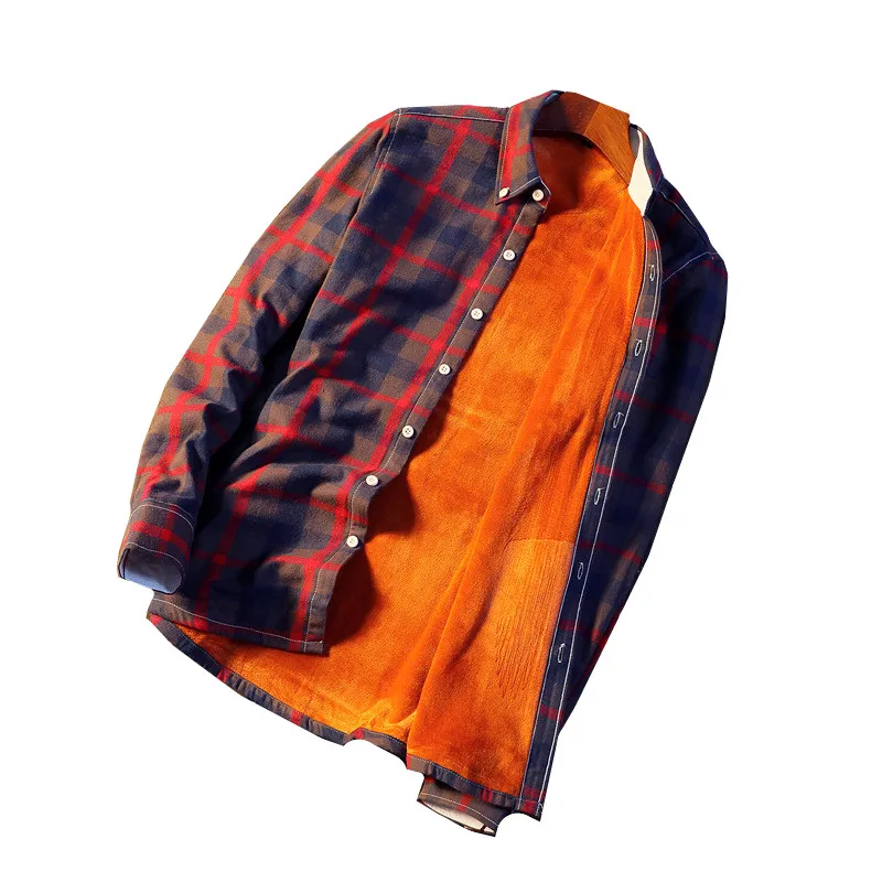 Новая зимняя рубашка в клетку с плюшем Мужская Повседневная футболка с длинным рукавом рубашки Slim Fit теплая дутая куртка с хлопковой подкладкой, модельные туфли Мужская сорочка S-5XL