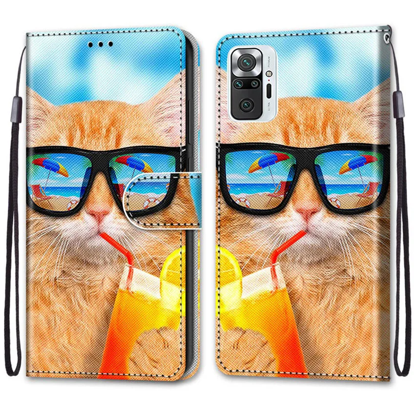 Чехол-книжка для Xiaomi Redmi Note 10 Pro Max, 10S, 4G, 5G, кожа, с рисунком кошек, собак