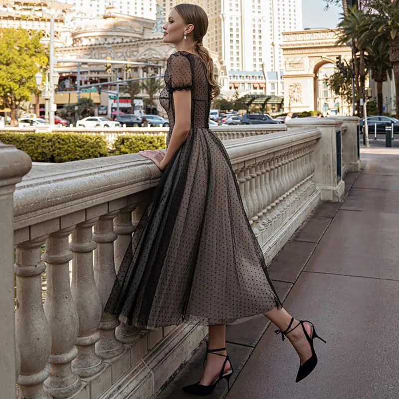 Элегантные черные кружевные тюлевые официальные платья в горошек, вечерние платья до щиколотки, платья для выпускного вечера, трапециевидные Элегантные платья для матери