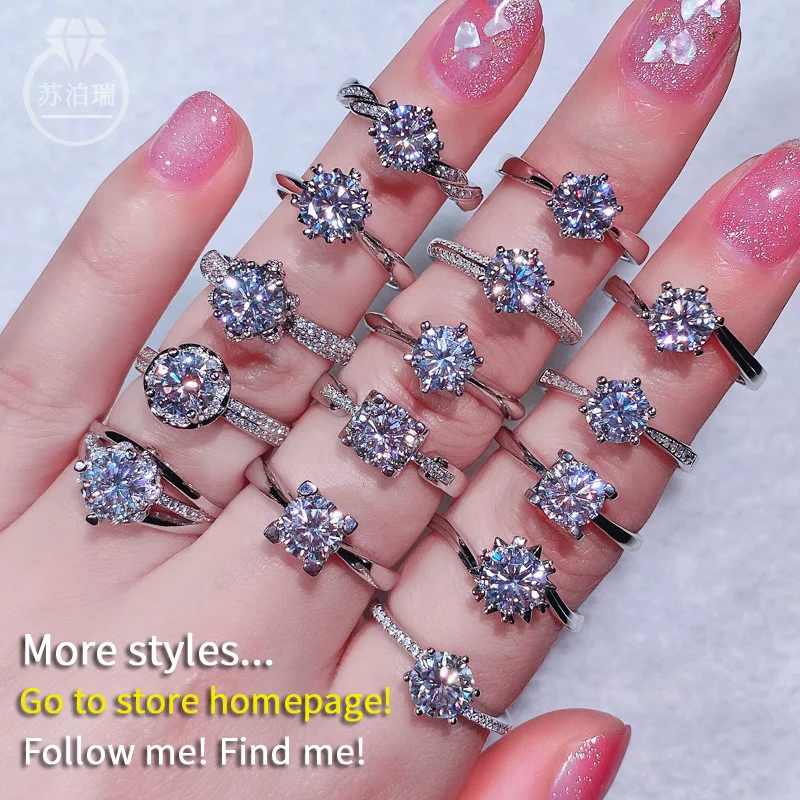 Кольца с муассанитом, 100% реальная игра, классическое кольцо из се...