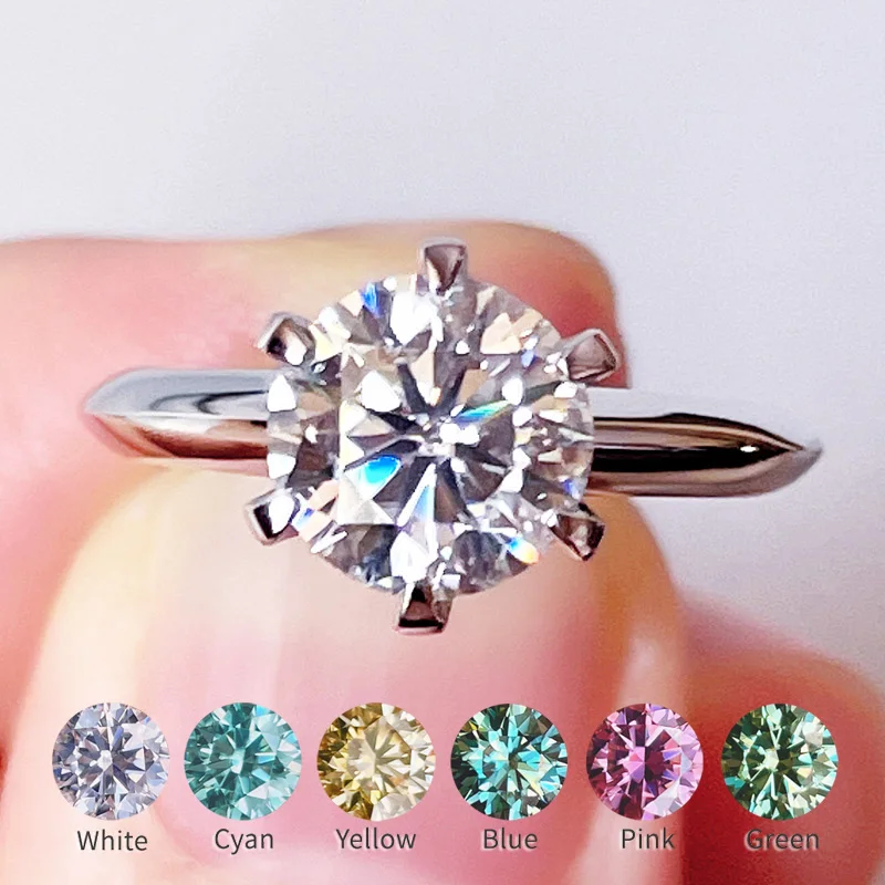 1-2 карат муассанит Кольца цвет D VVS синий розовый желтый зеленый ...