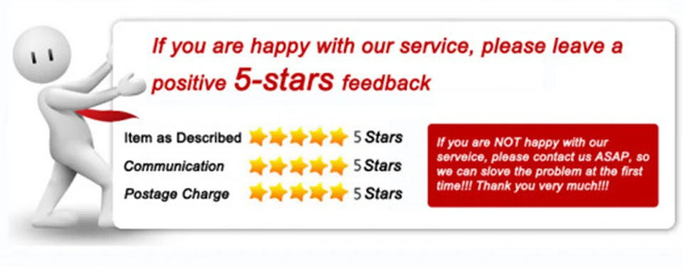 Если вы удовлетворены нашей продукцией, пожалуйста, дайте нам все пять звезд отзывы. По любым вопросам, пожалуйста, немедленно свяжитесь с нами. Спасибо!
