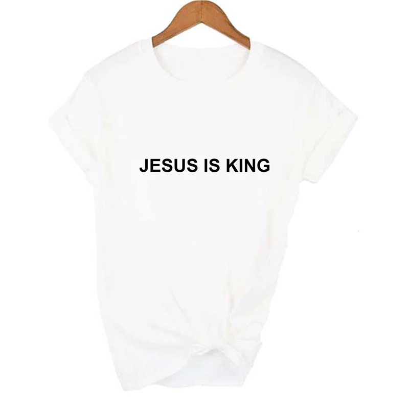 И надписью Jesus Is King Письмо печати Для женщин футболка Кристиан Вера Надежда Любовь Harajuku футболки Религия Футболки Уличная женская одежда