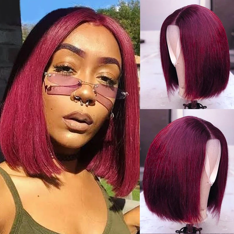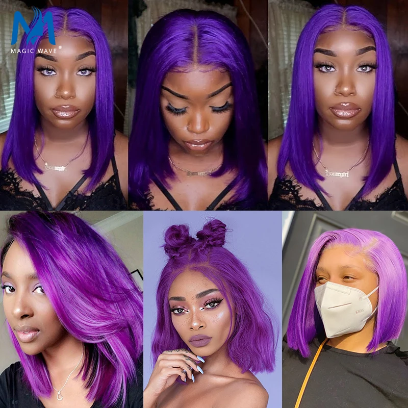 Цветной парик Боб для чернокожих женщин 13x4, парик Боб на фронтальной сетке, розовый, зеленый, фиолетовый, коричневый, яркий парик Боб на сетке, Короткие парики боб на сетке