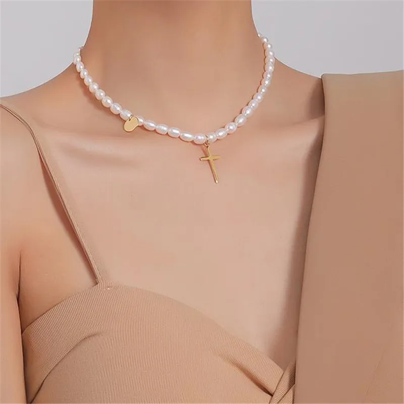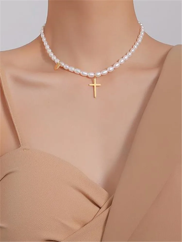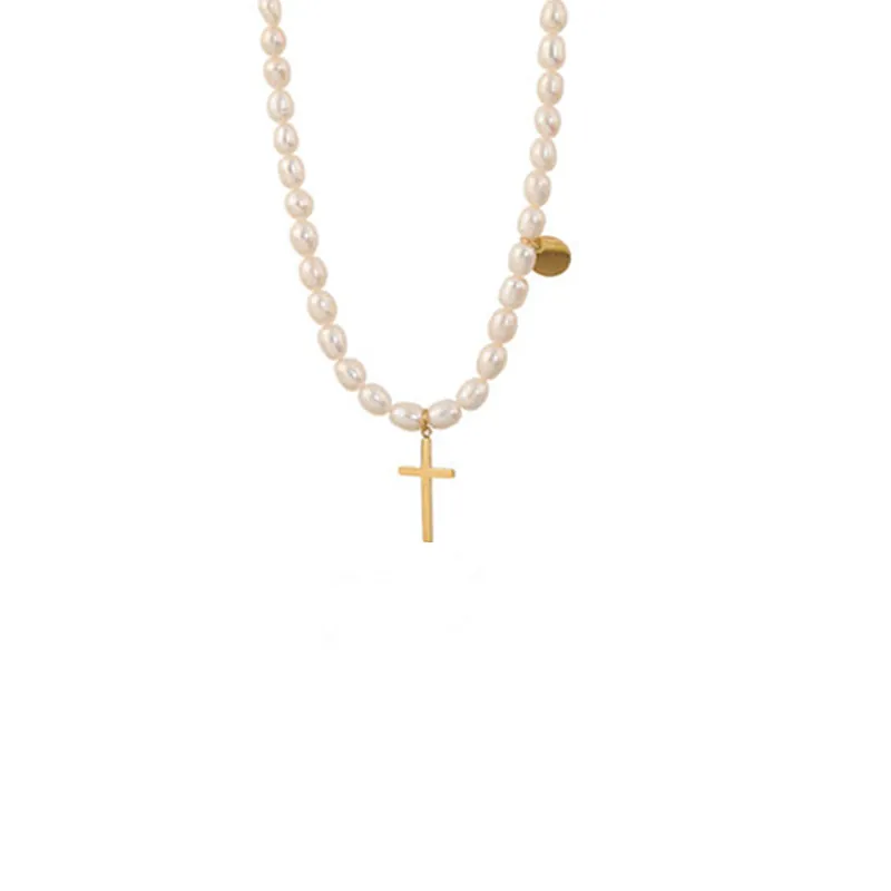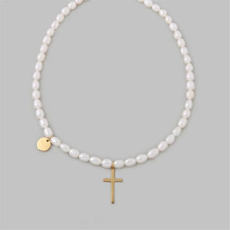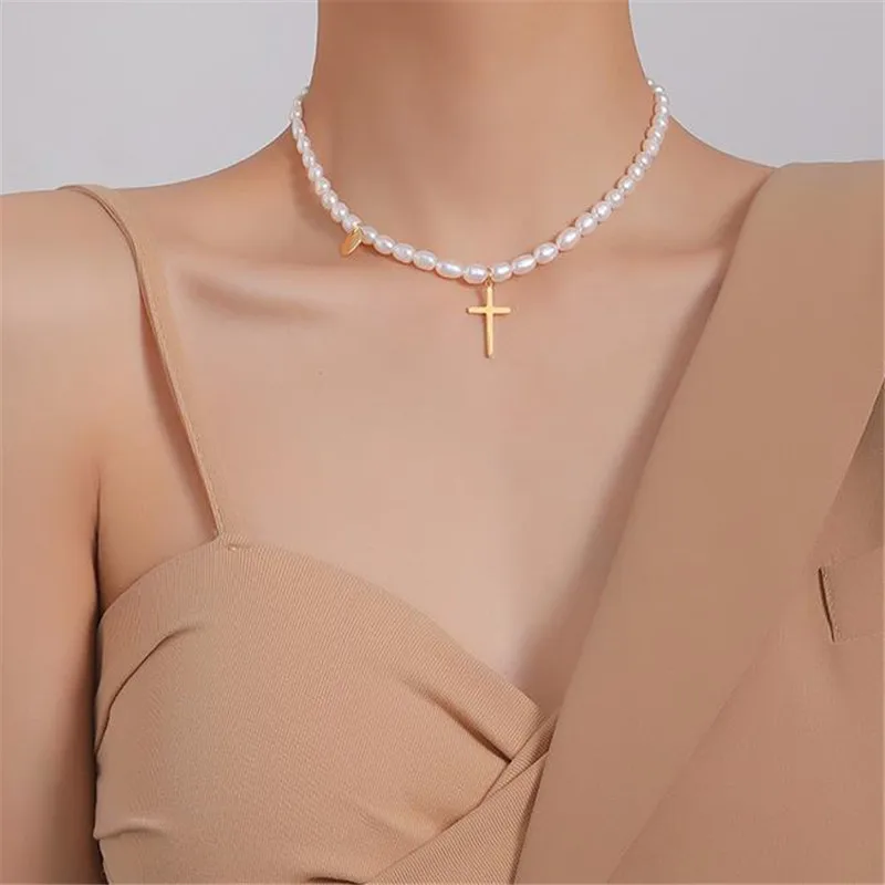 Ожерелье Kshmir в стиле ретро с пресноводным жемчугом и крестом, модная цепочка под ключицы в стиле интернет-знаменитости, подарочное ювелирное изделие, 2021