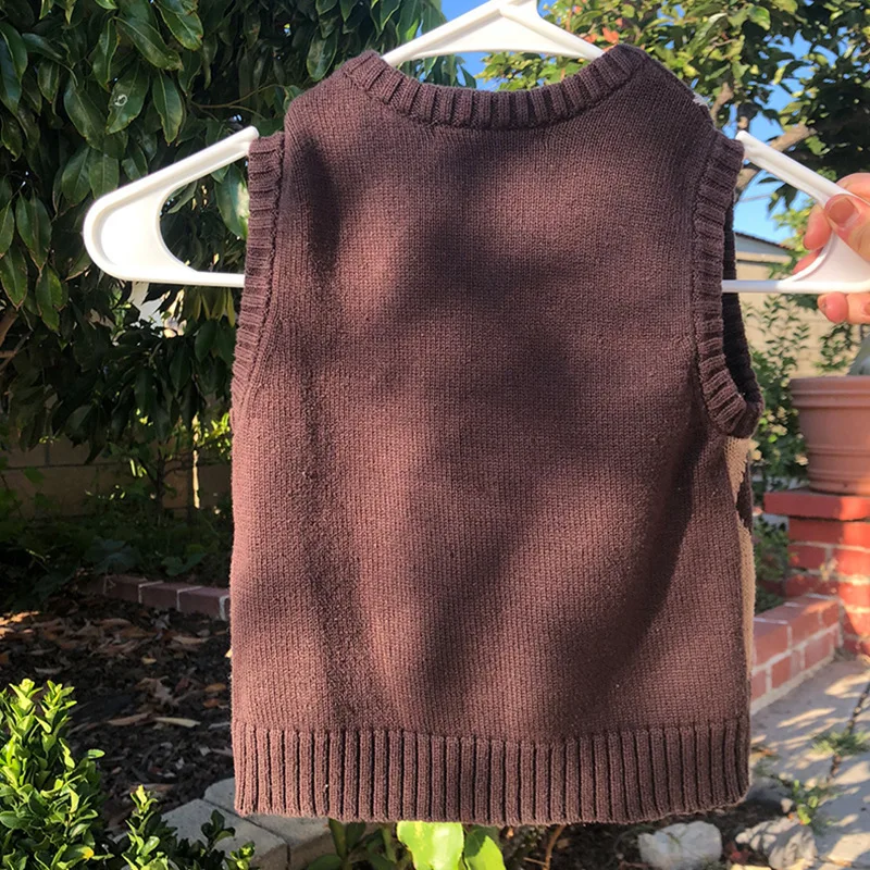 Женский винтажный свитер с V-образным вырезом, черный вязаный укороченный свитер в клетку без рукавов, повседневные Осенние Топы в стиле преппи, 2021