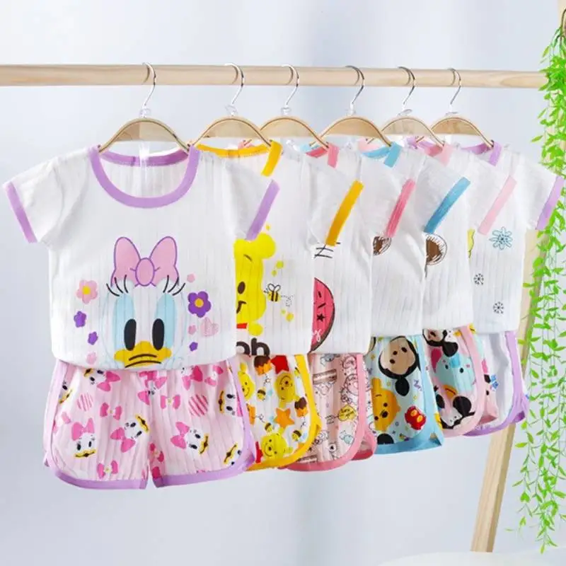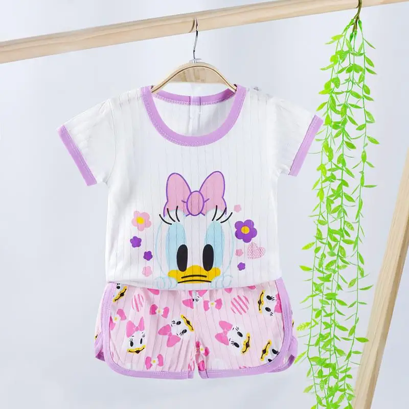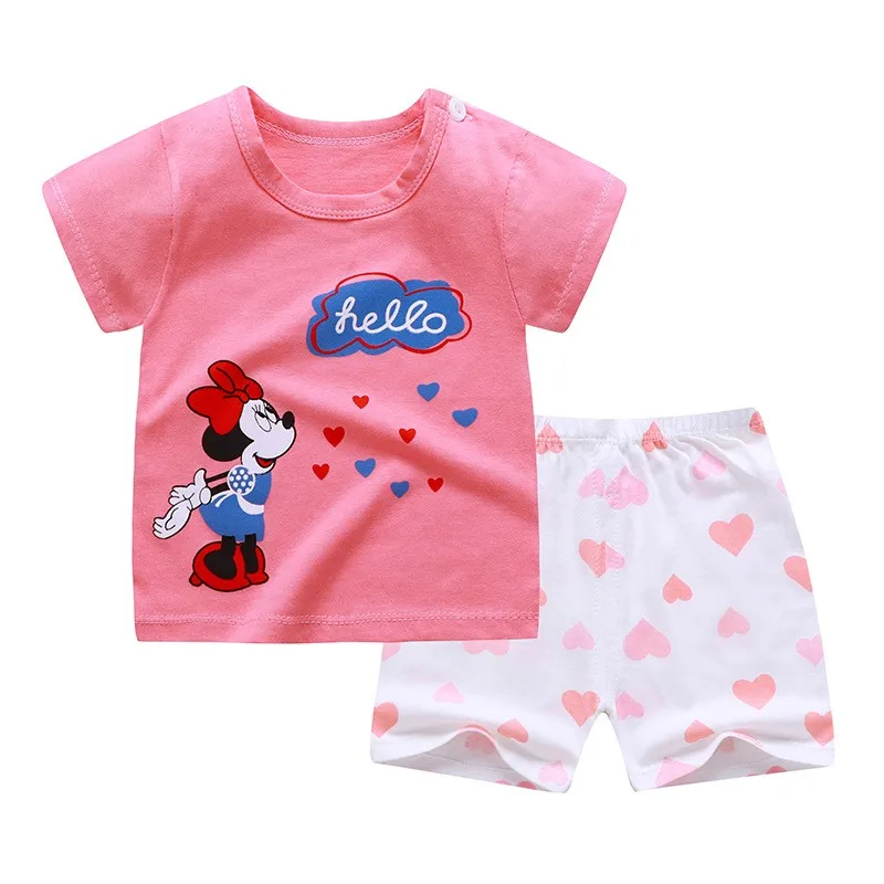 Летняя одежда для младенцев, мальчиков, костюмы, модная одежда для девочек, повседневные наряды с мультяшным принтом, одежда для мальчиков