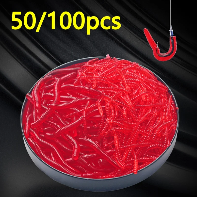 Силиконовая искусственная приманка для рыбалки, 50100 шт., Реалистичная Красная Мягкая приманка в виде червя, 35 мм, с запахом рыбы, креветки, окуня, карпа