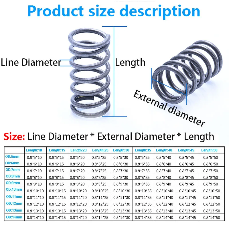 Ротор Давление Весна сжатая пружина большие и маленькие Весенняя распродажа магазине линия Диаметр 0,8-0,9 мм, внешняя Диаметр 5-18 мм