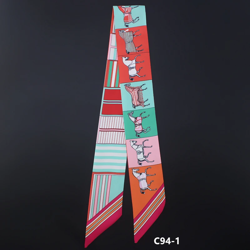 Шарф женский шелковый с принтом лошади, длинный, 2018