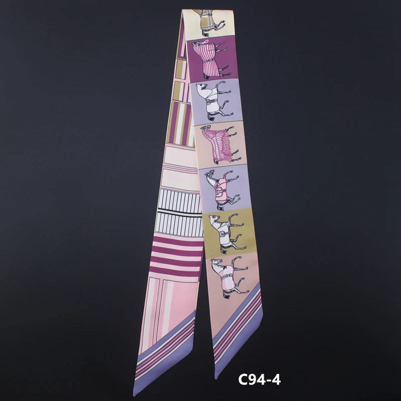 Женский узкий шарф в клетку Horse, шелковые шарфы, модный головной ...