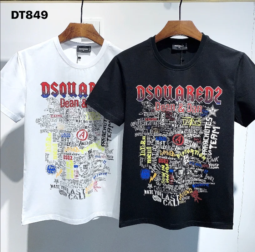 DSQ-классический итальянского бренда мужские и женские футболки в уличном стиле с принтом на каждый день с круглым вырезом с коротким рукавом Графический DT849